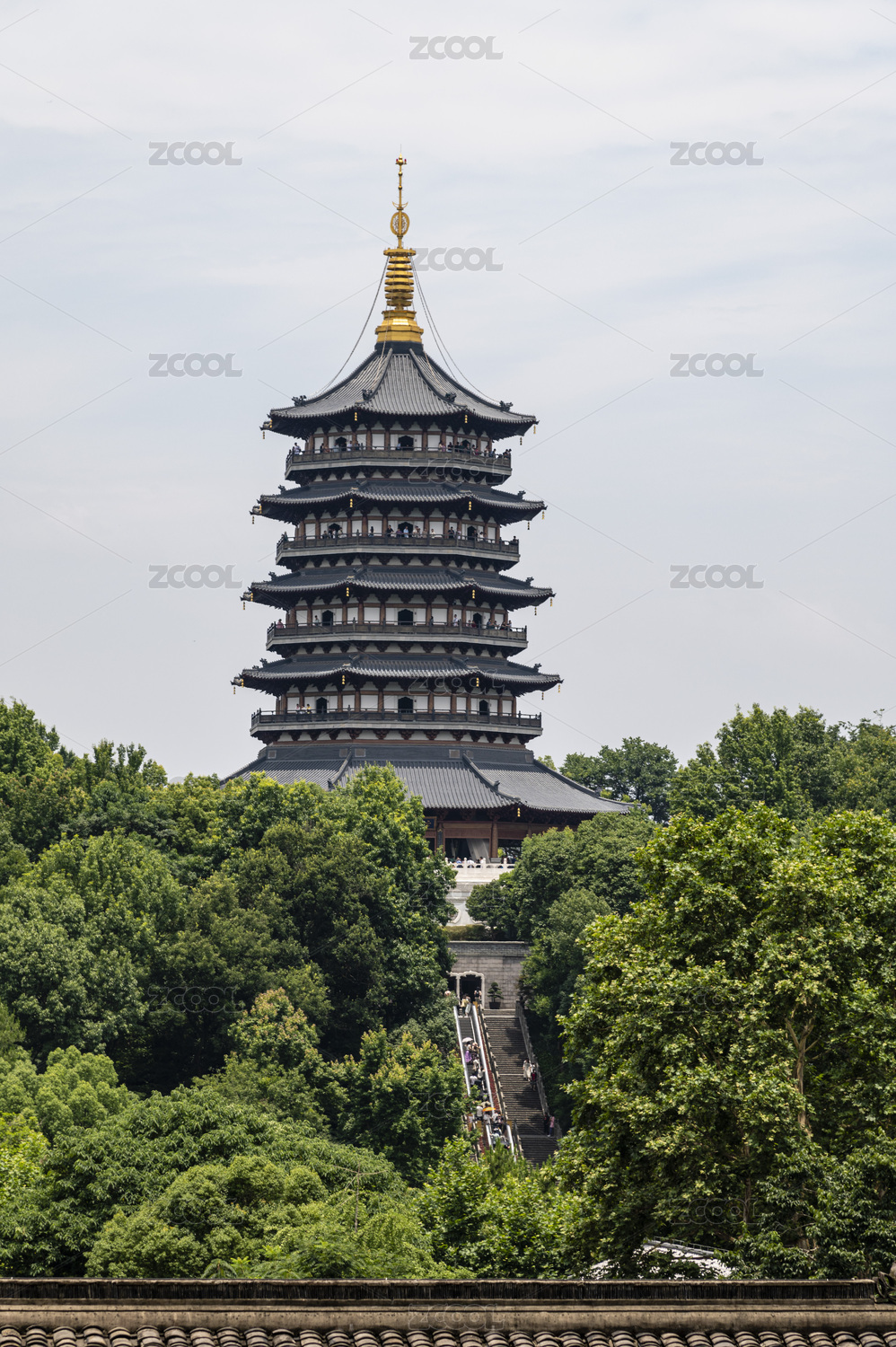 雷峰塔与绿树相映成趣