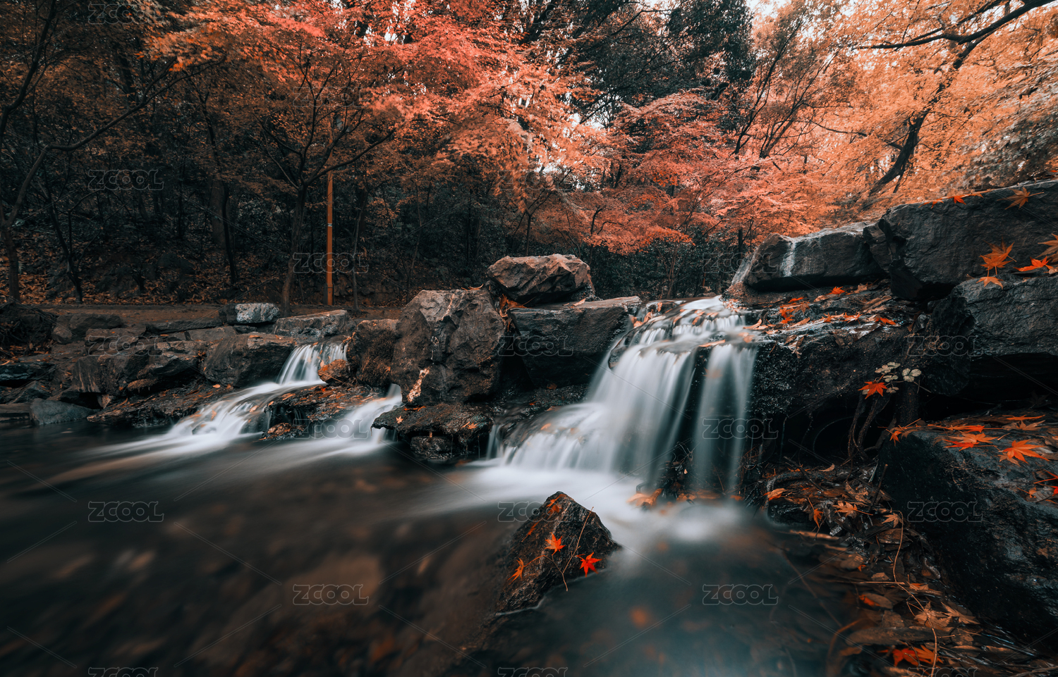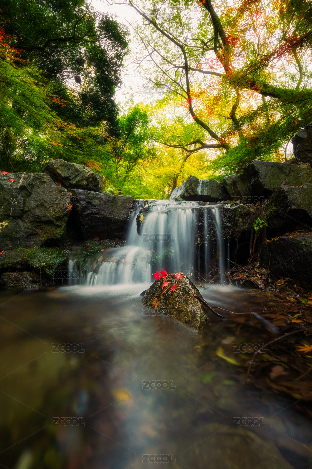 九溪枫叶与流水慢门