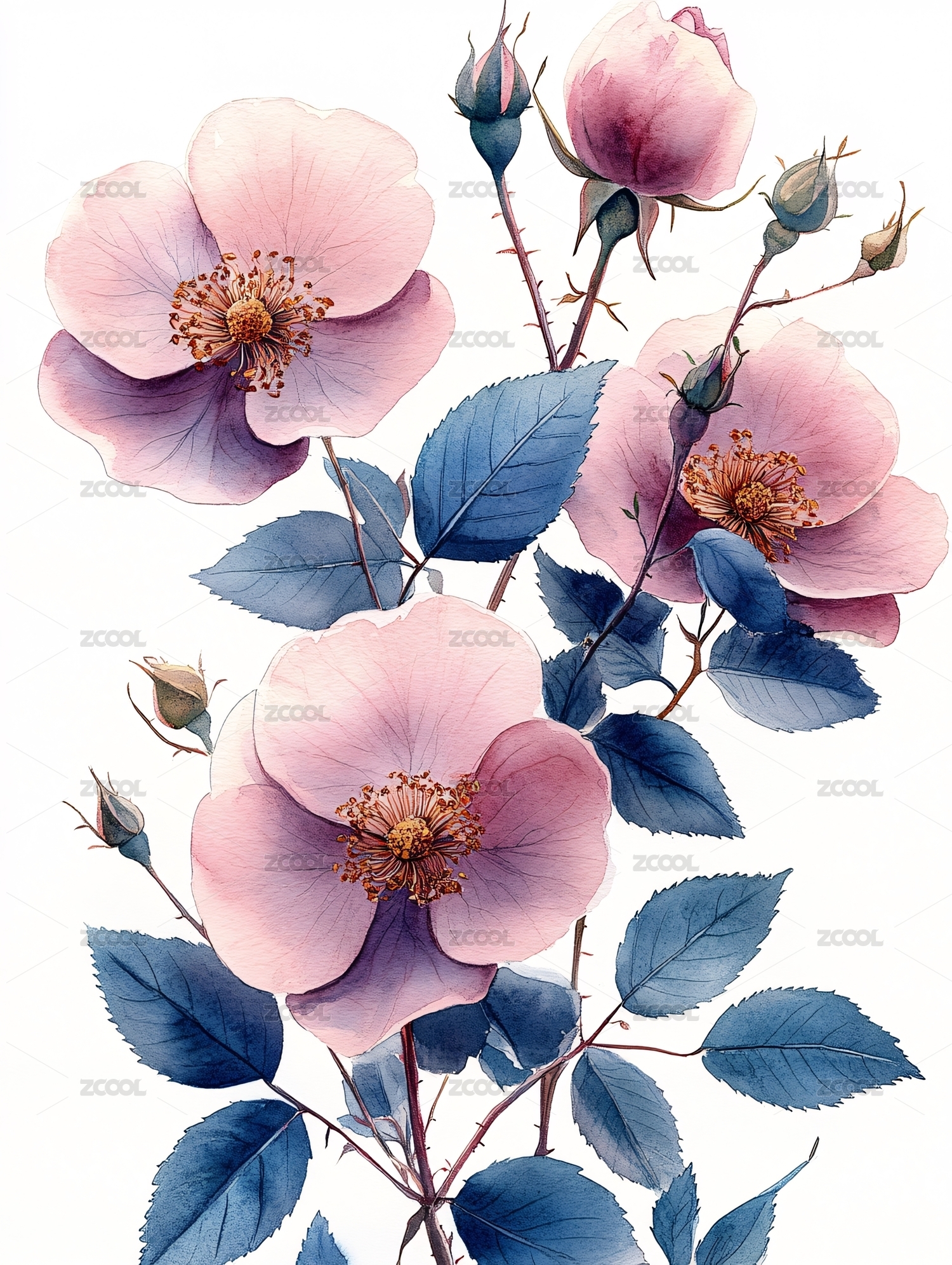 数码水彩花朵围绕边框植物抽象图形海报背景