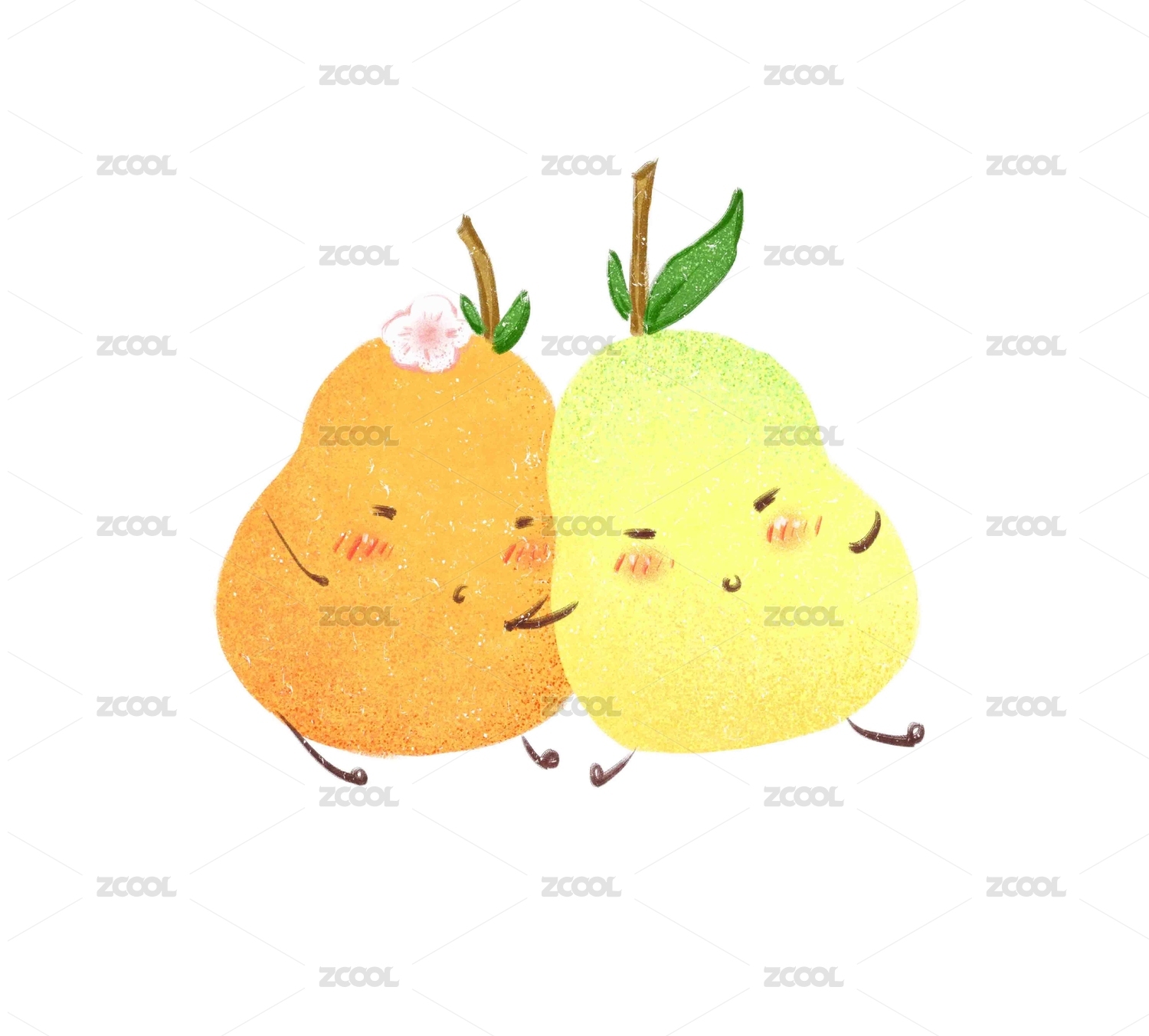 一个卡通梨上面有一张脸上面有一片叶子高清