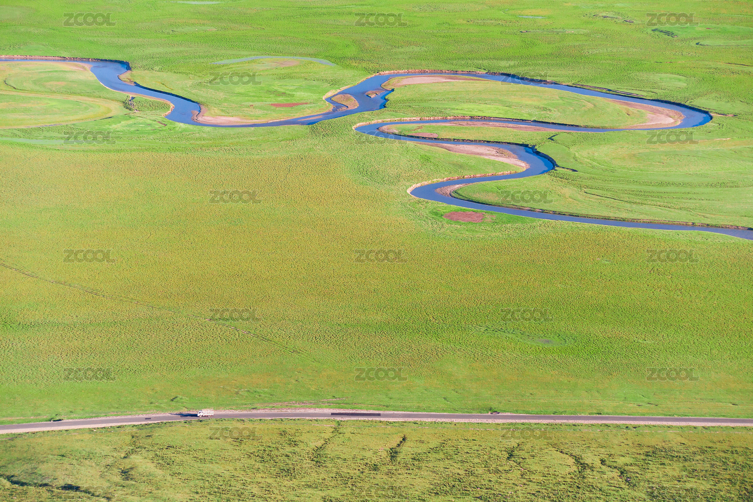 草原上的河流湿地
