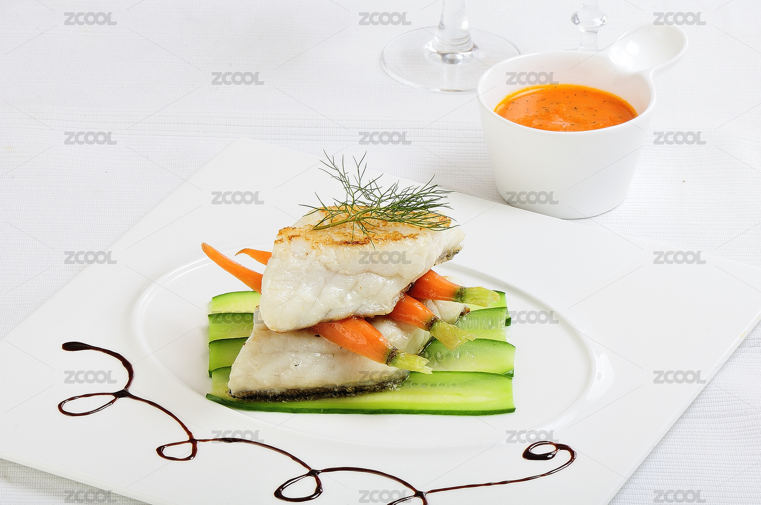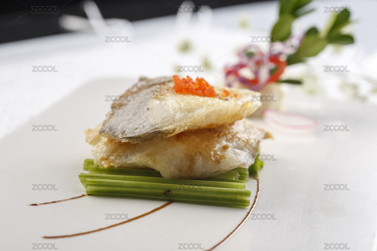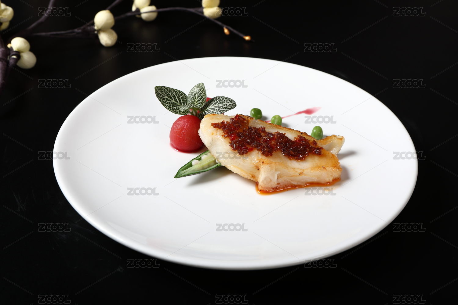 白色瓷盘装的铁板俄罗斯龙鳕鱼