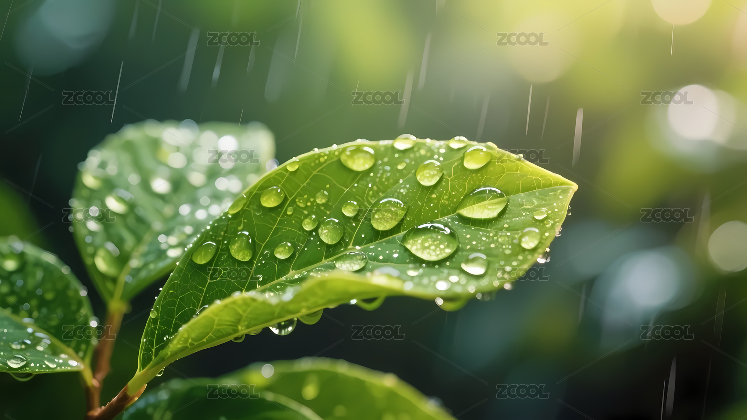 雨中绿叶水珠光晕
