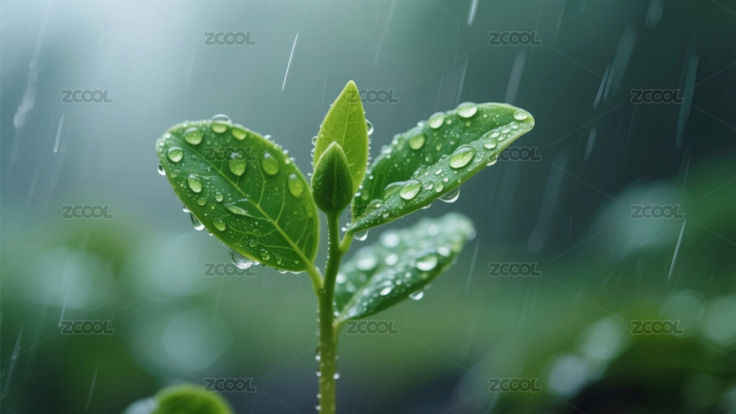 雨中嫩绿植物