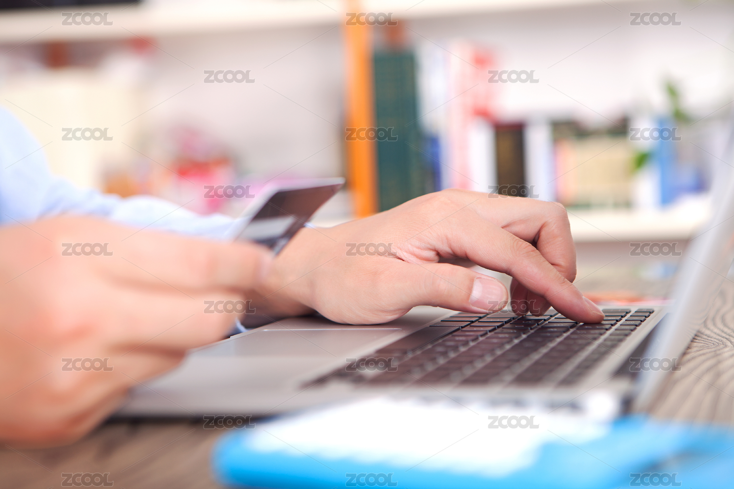 特写白领女性在窗边办公台上的笔记本电脑打字输入