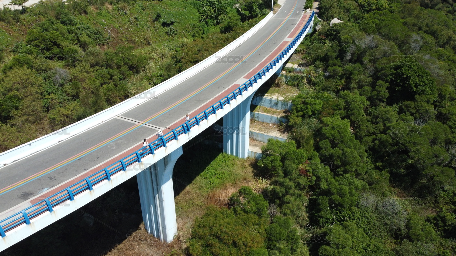 俯拍横跨山间的桥梁,法国蔚蓝海岸埃滋小镇