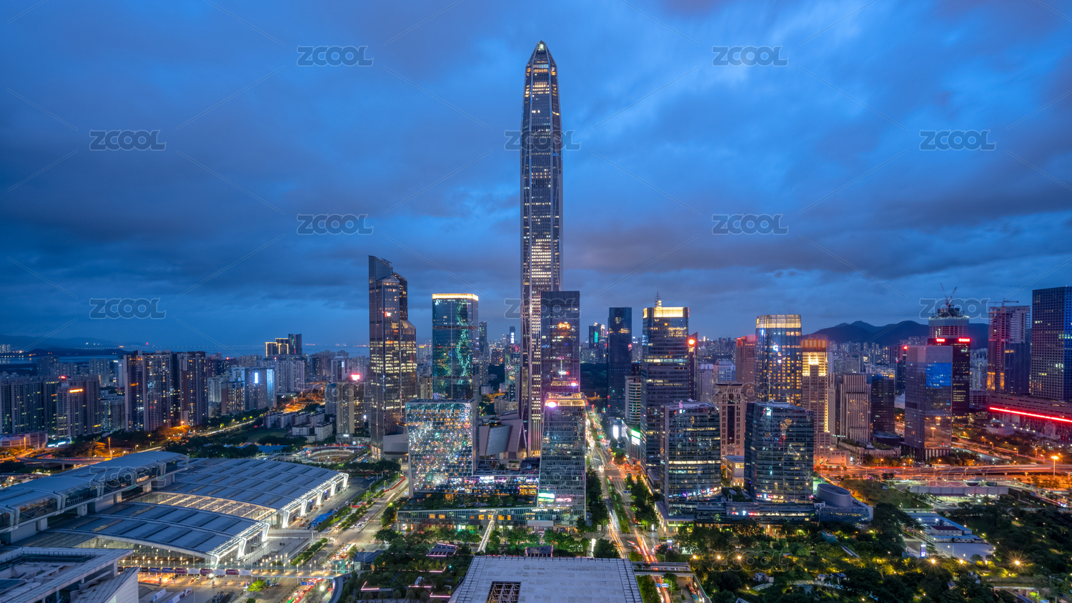 深圳福田天际线CBD平安金融中心夜色蓝调