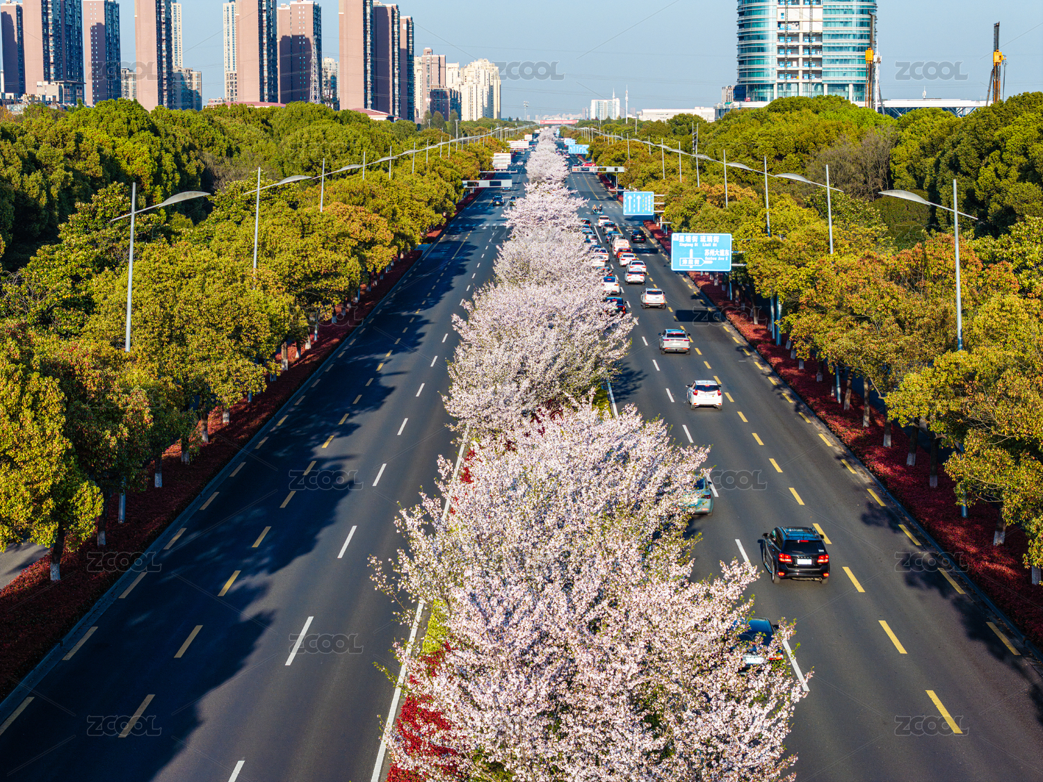 中国,江苏,苏州,春天,樱花,航拍视角,风景,旅行,苏州工业园区,现代大道