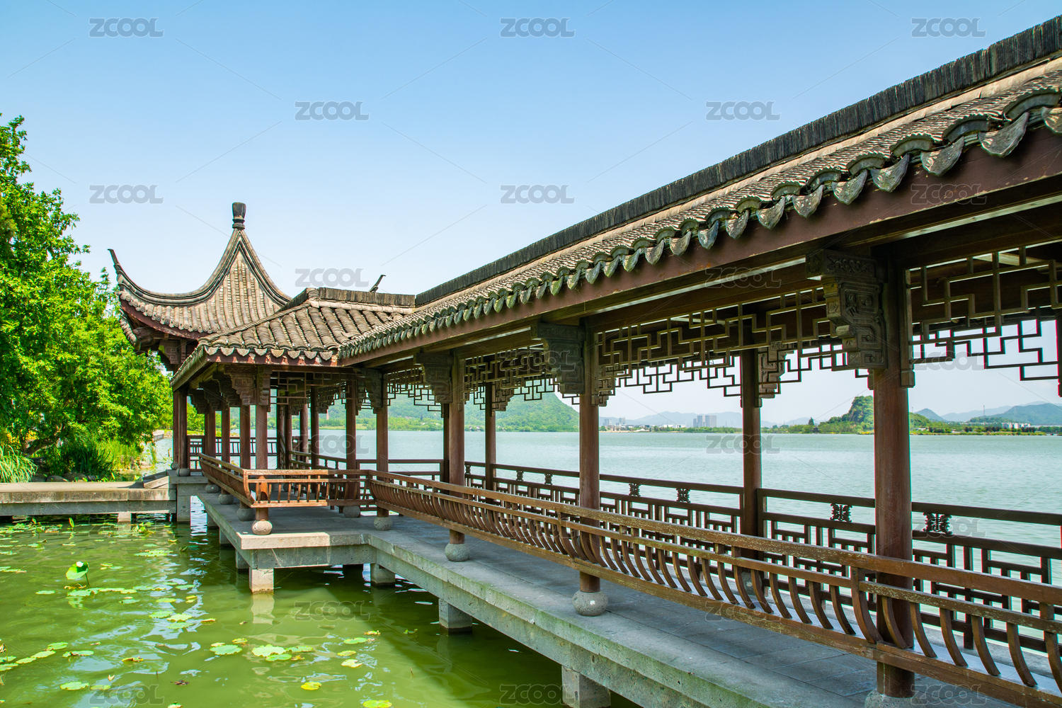 中国浙江萧山湘湖旅游度假区古建筑长廊