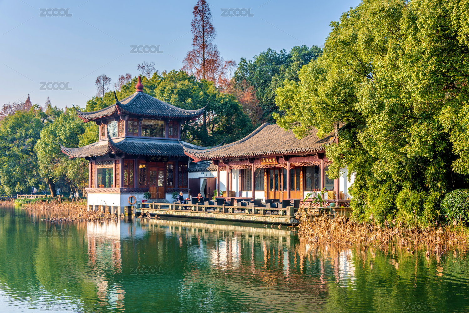 中国浙江杭州西湖江南园林风光