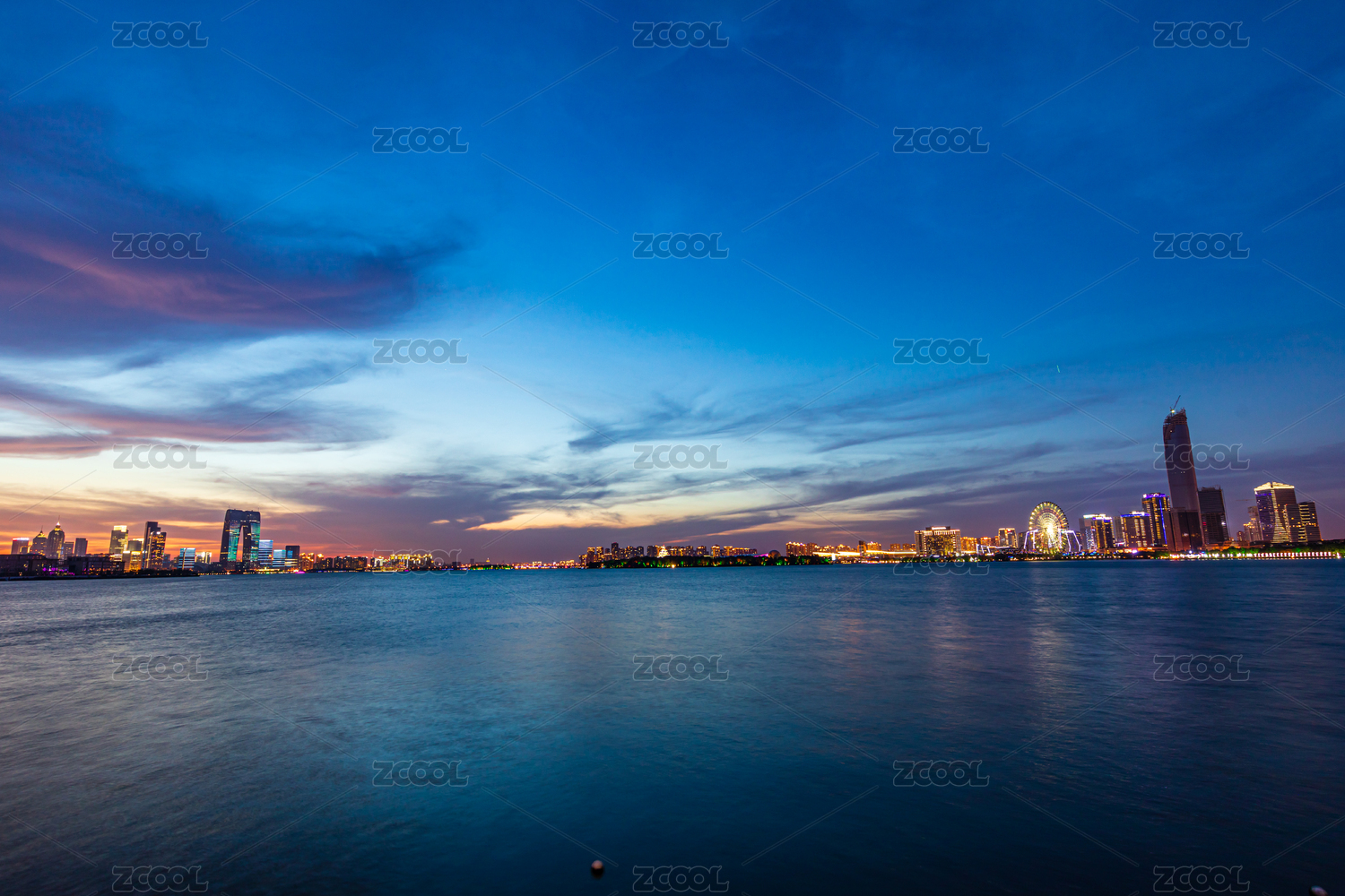 苏州金鸡湖湖东现代滨水城市夜景风光