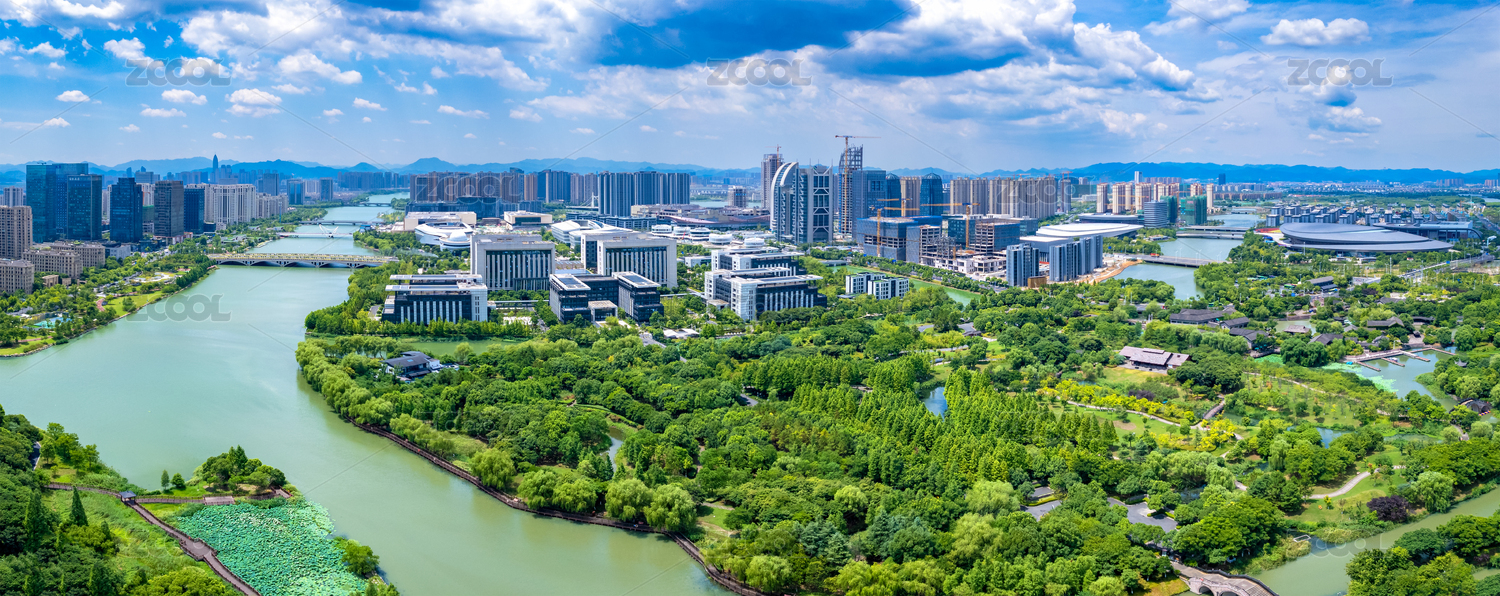 浙江省绍兴市镜湖新区航拍城市风光