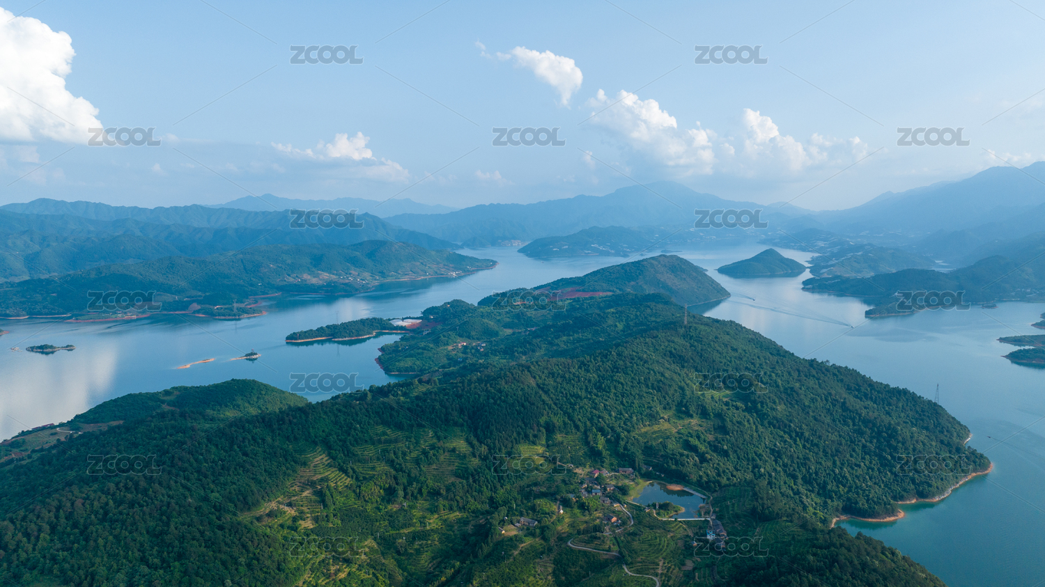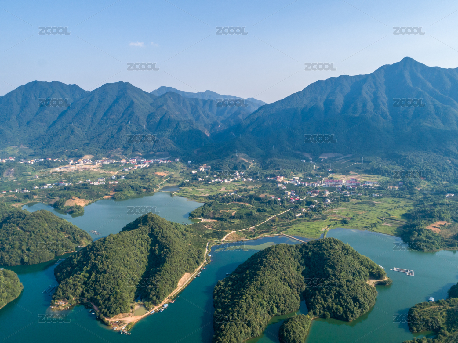 俯瞰柘林湖千岛湖风光,中国江西九江
