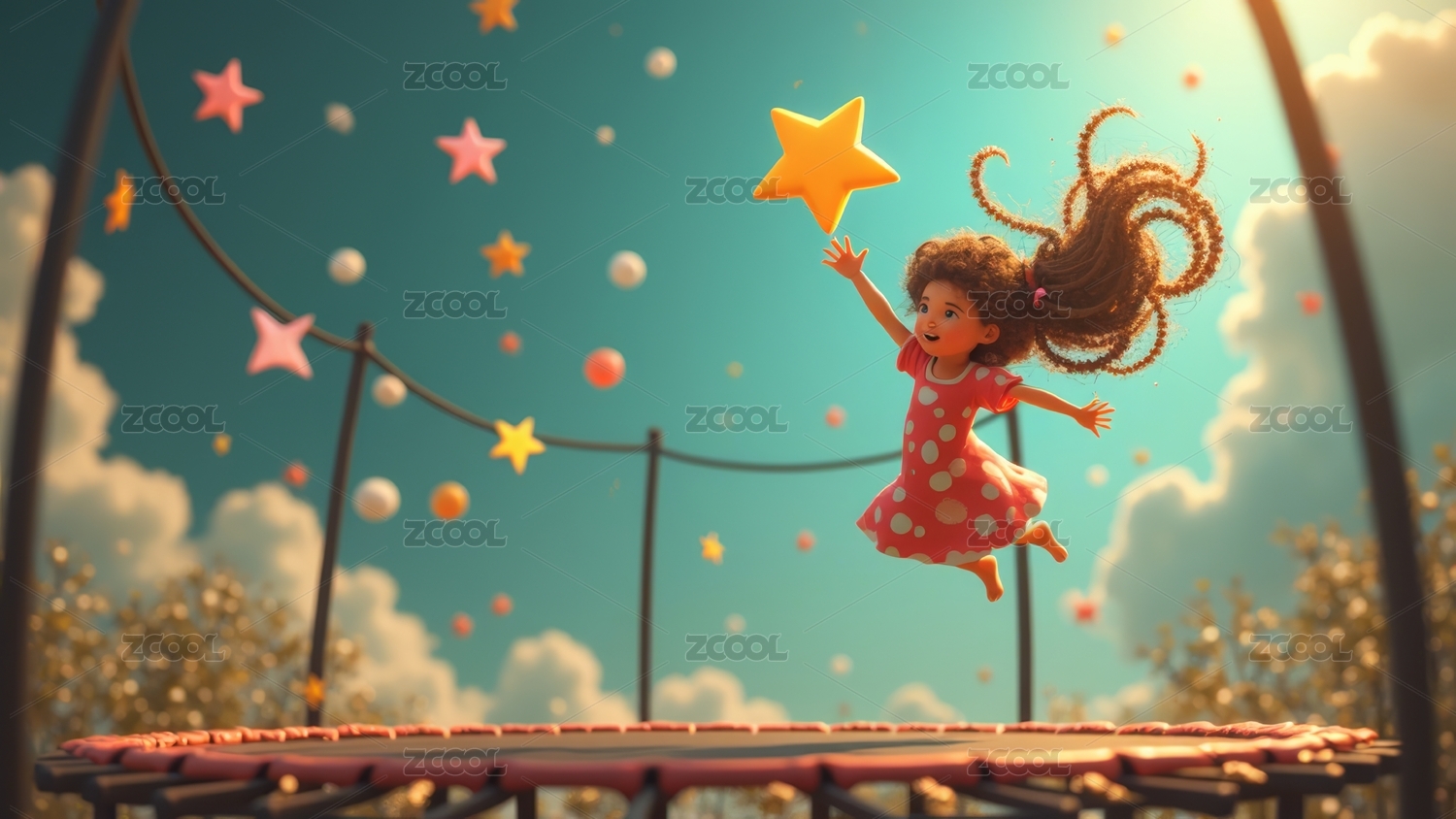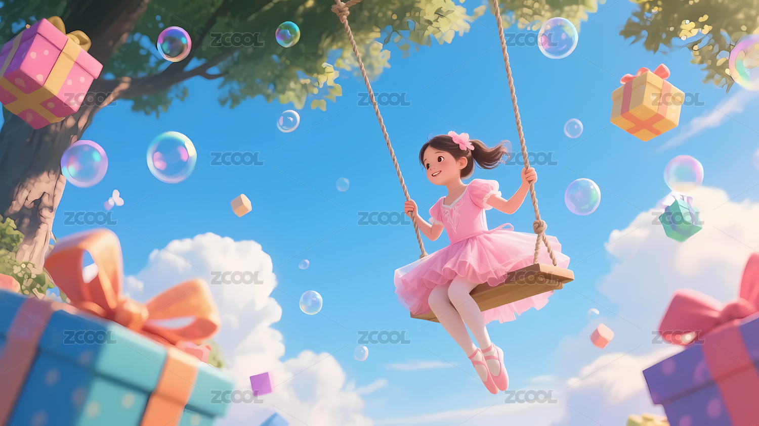 红色, 快乐, 3D, 动画, 女孩, 幸福, 微笑, 卡通, 插画, 唯美