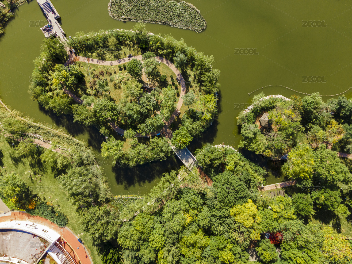 天津,大港,大港公园,湖中,小岛,俯视,航拍,绿色,秋色,高空