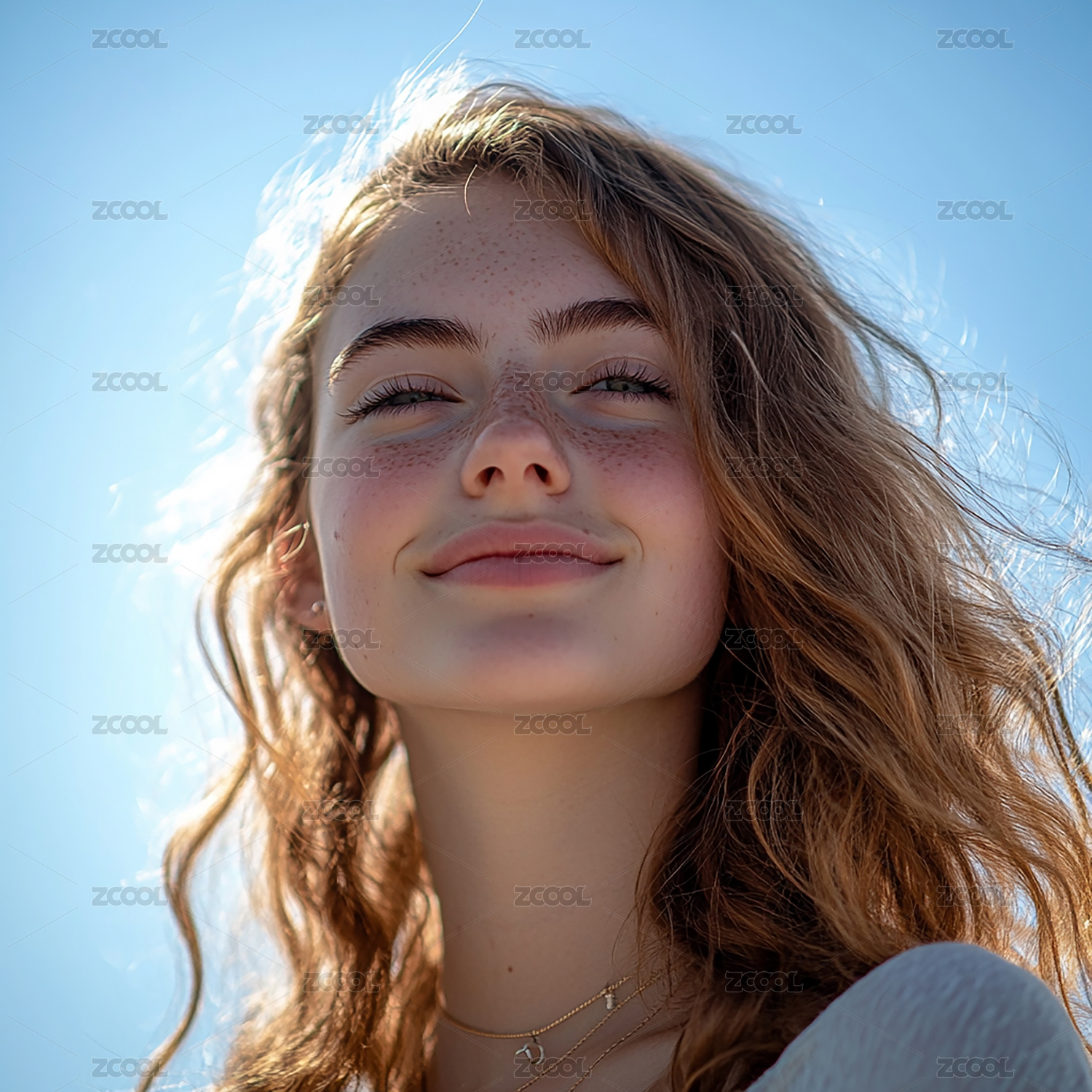 美女,女性,微笑女性,蓝天,美丽,女孩,模特,特写,美女特写,头像