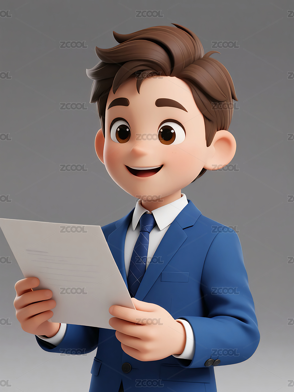 3D,卡通,人,插画,商务,男,男人,站,一个人,金融