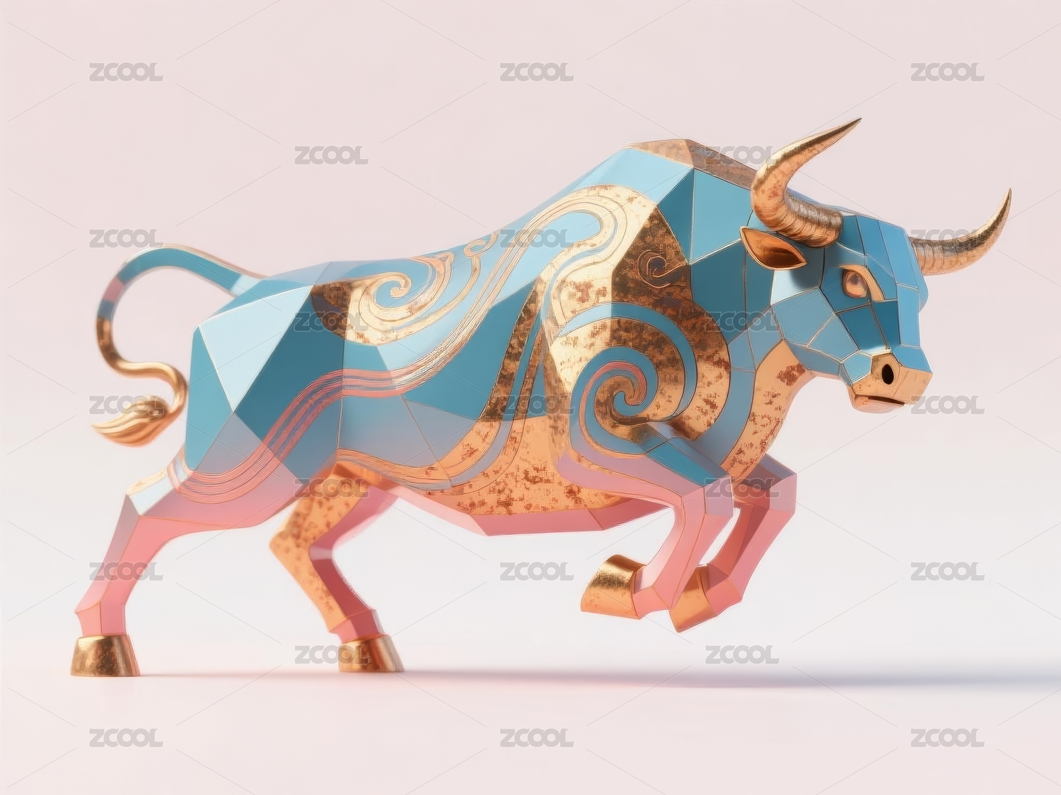 金色多边形牛雕塑