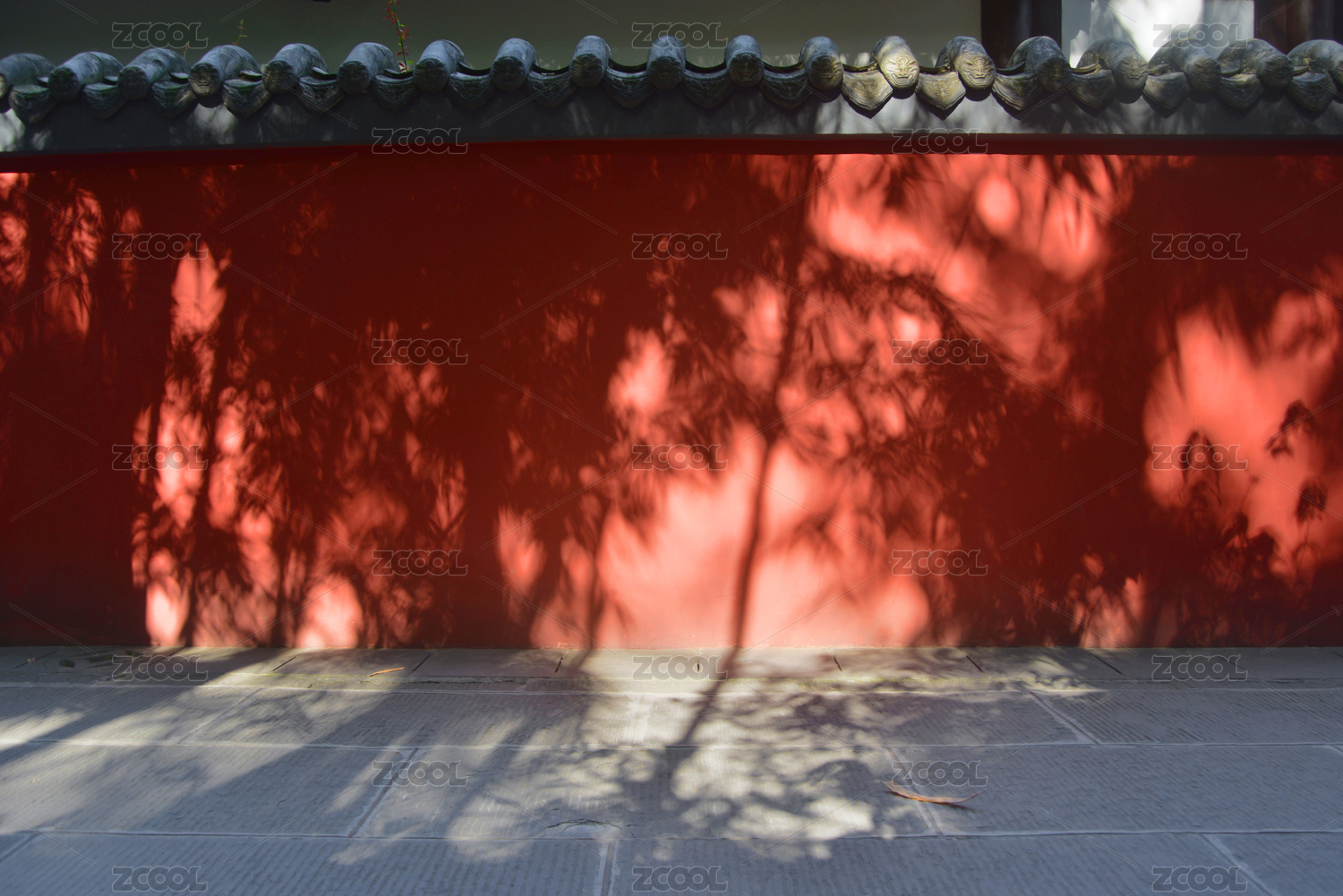 中国四川成都杜甫草堂花径红墙夹道竹林投影