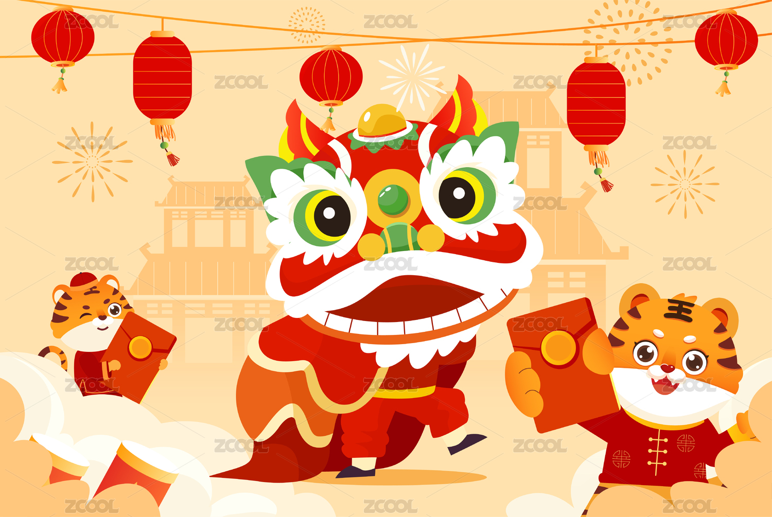 春节舞狮插画