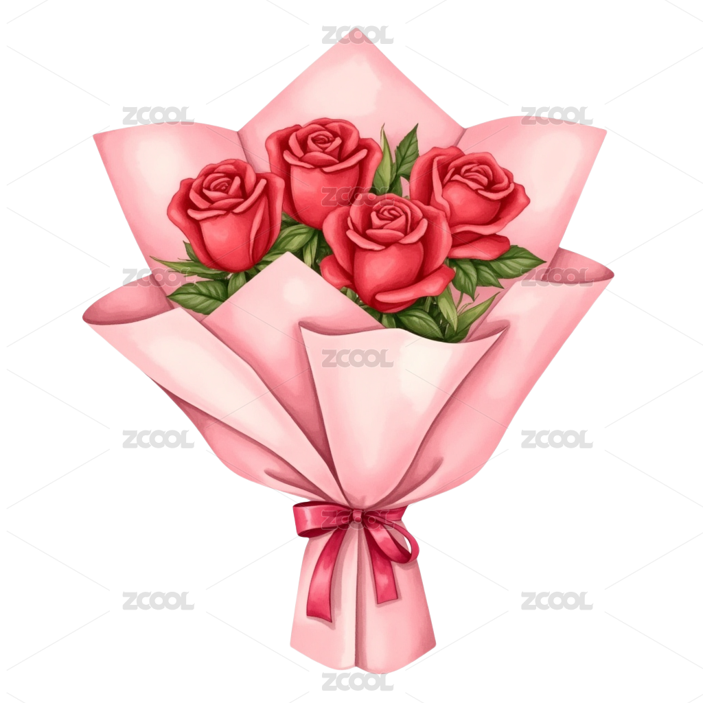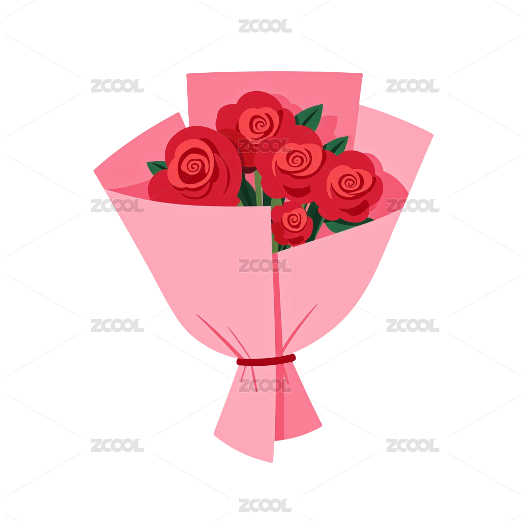 一束玫瑰花束情人节七夕浪漫手绘插画