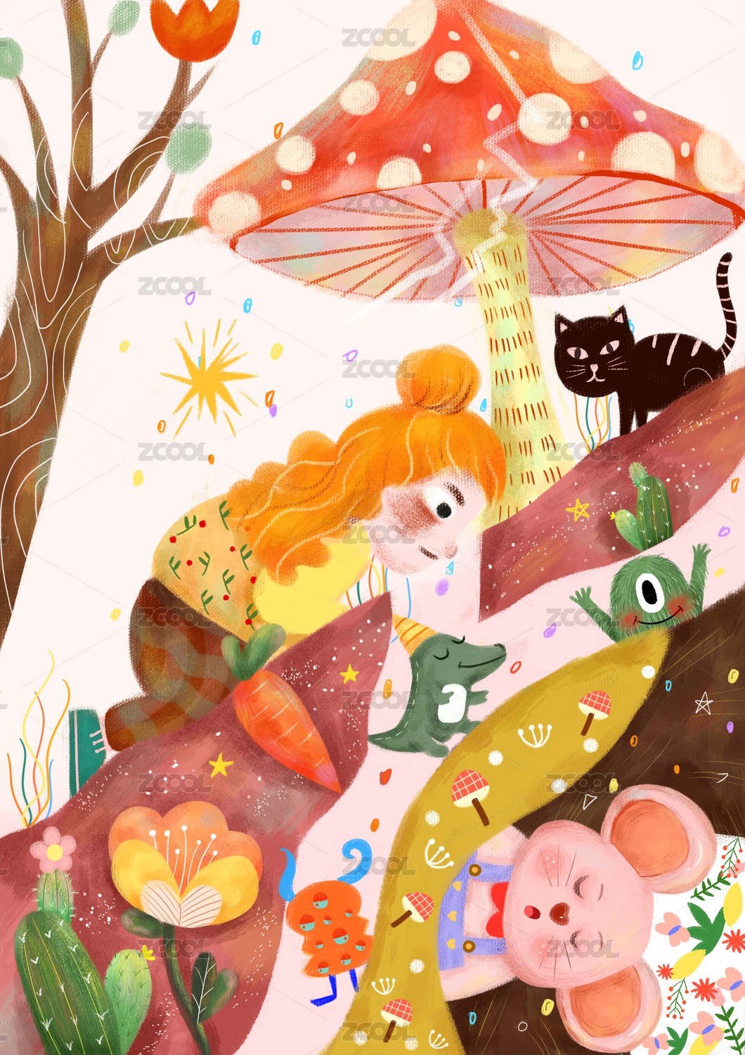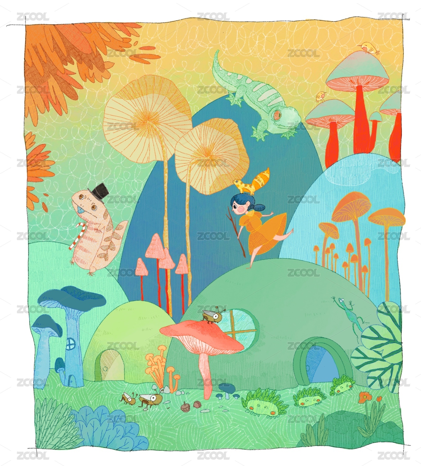 棕色绿色树叶云朵小老虎蜜蜂草地