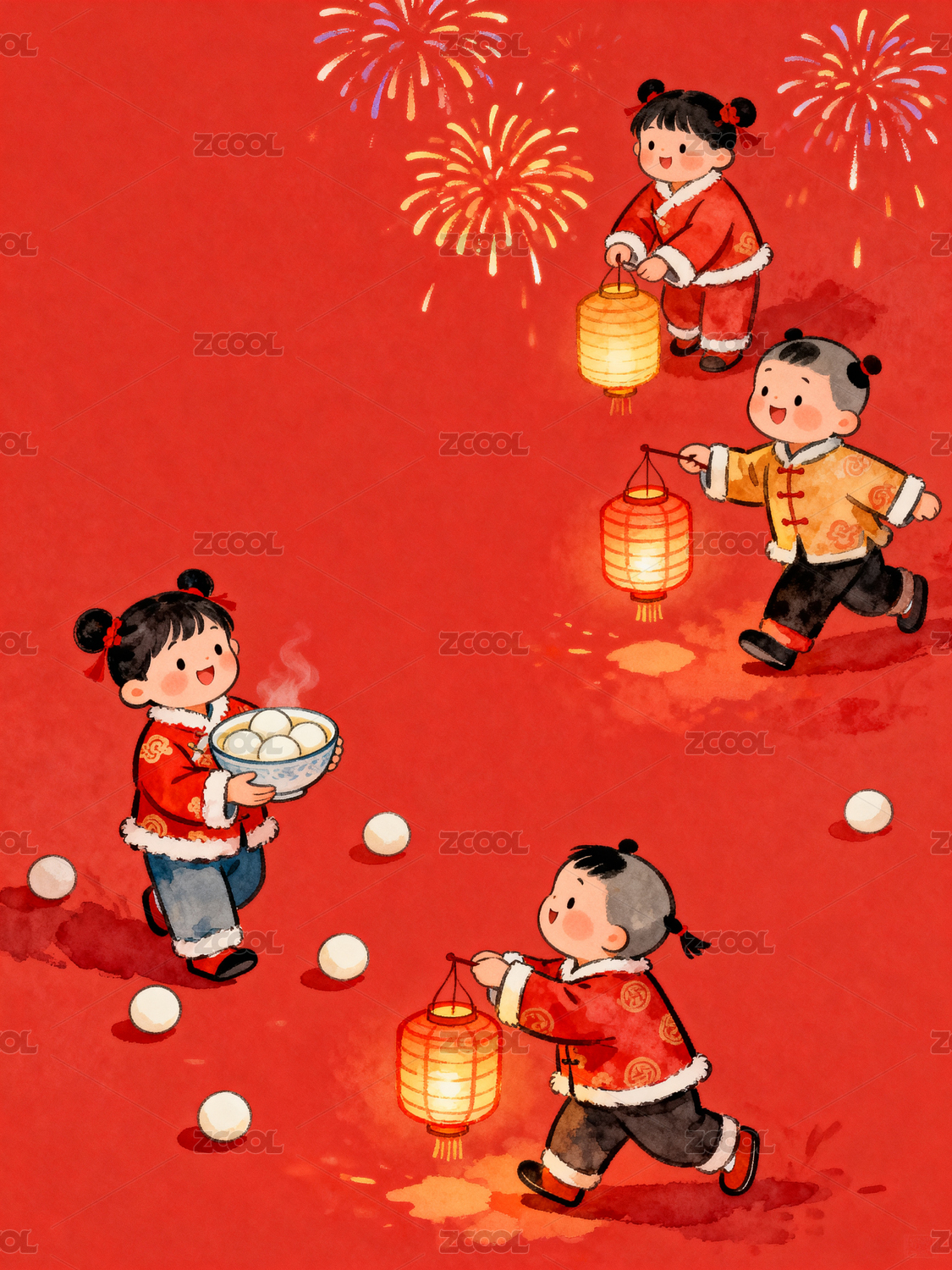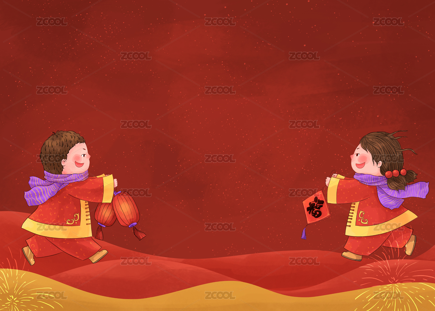 新年,过年,节日,庆典,儿童,男孩,女孩,可爱,灯笼,福字