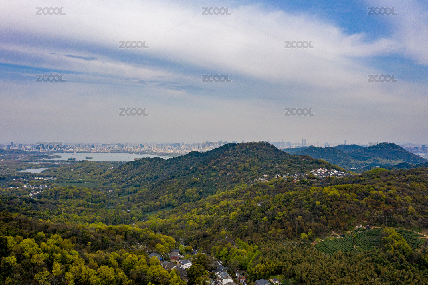 春天北京八大处公园视角长焦俯瞰城区及寺庙