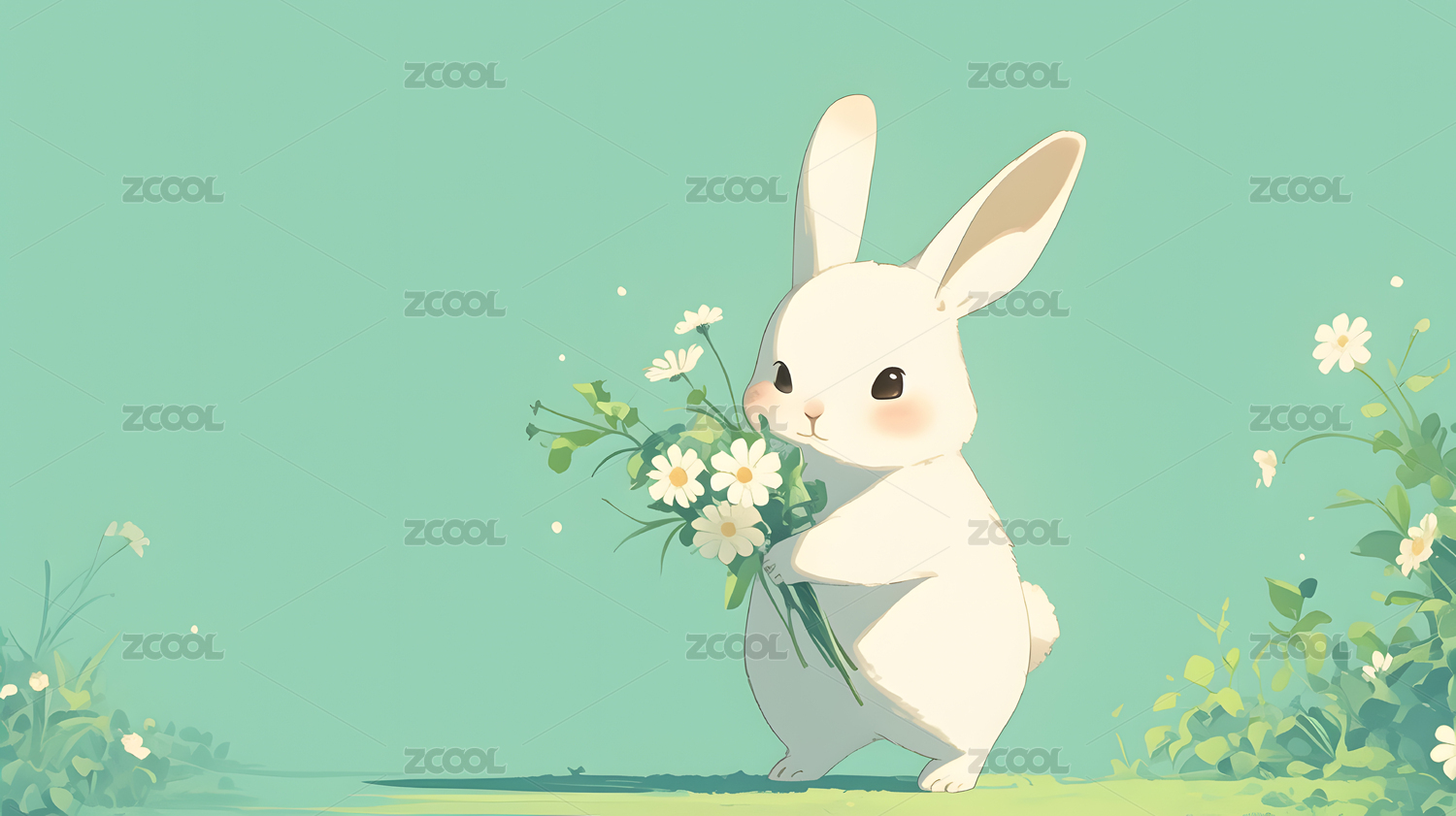 手绘,卡通,可爱,兔子,彩蛋,复活节,插画,鸡蛋,动物,节日