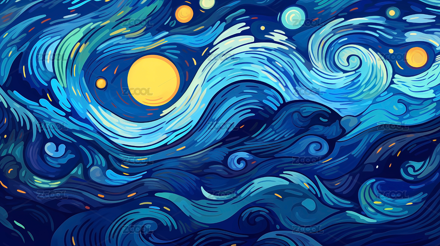 手绘卡通艺术抽象梵高风格印象派背景素材