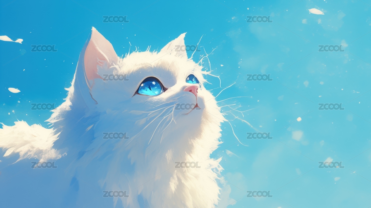 黑白猫咪蓝眼睛抽象羽毛艺术