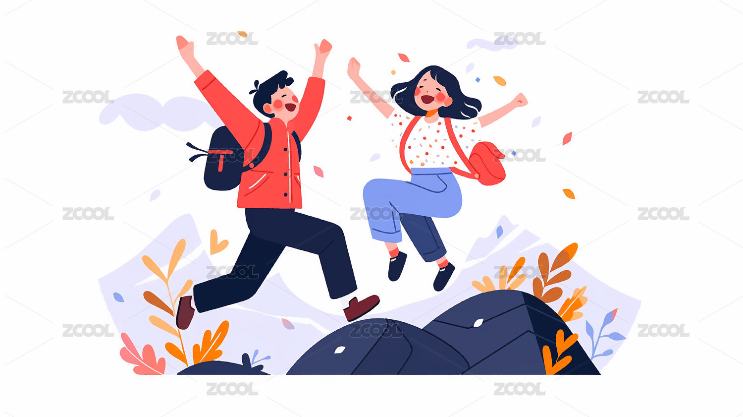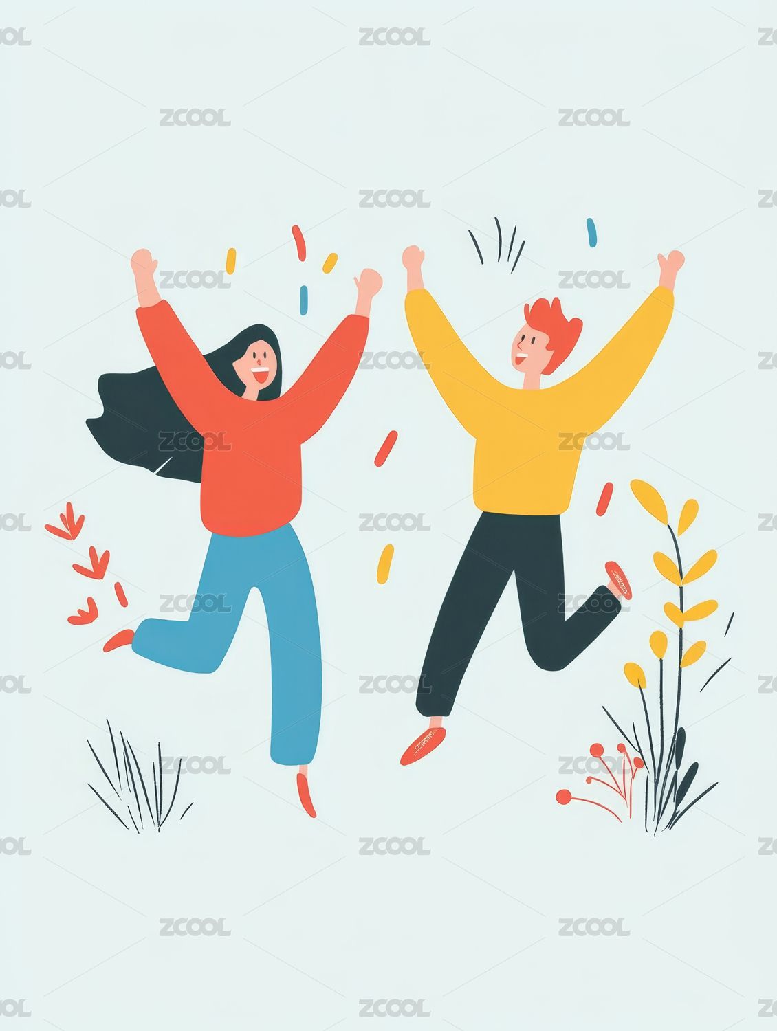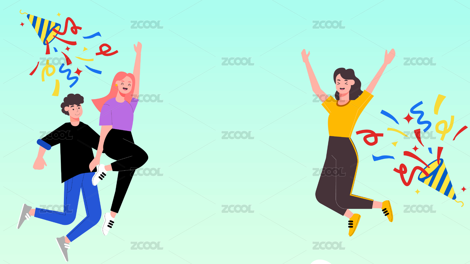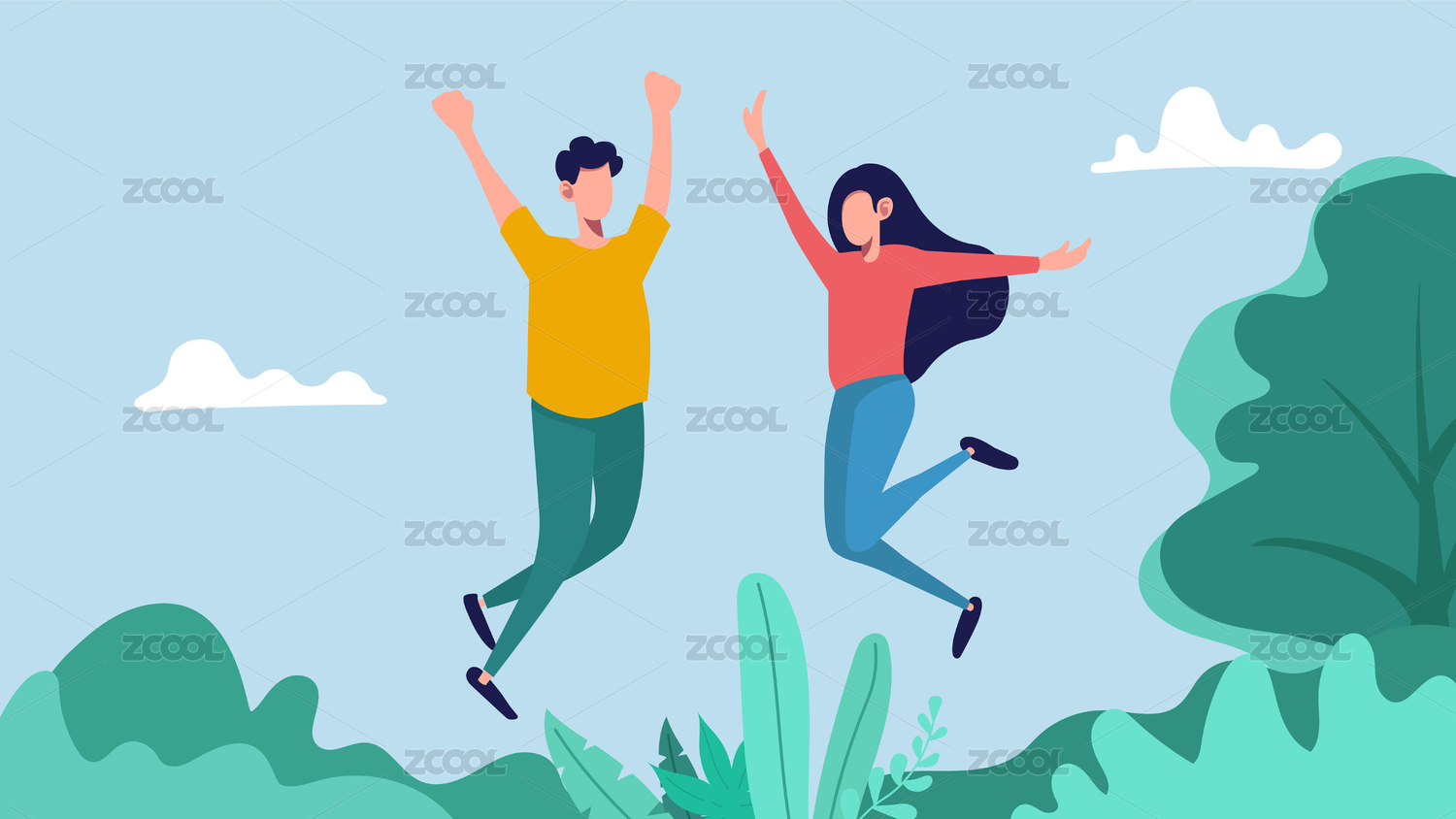 欢呼跳跃起来的青年男女庆祝欢呼喜悦节日