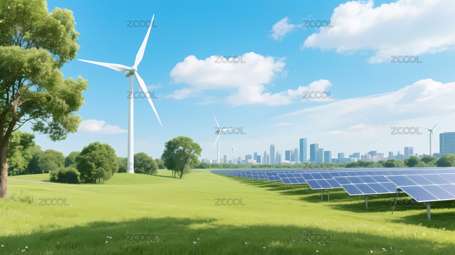 太阳能风力绿色丘陵