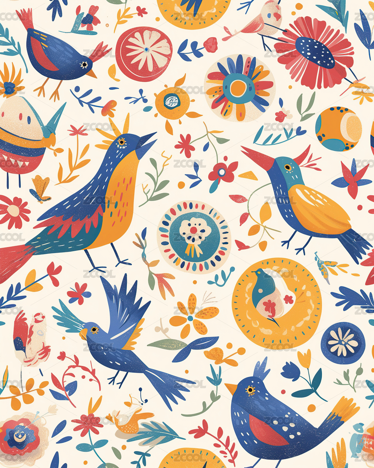 鸟,春天,无缝,花,树枝,图案,印花,色彩,布料,印刷