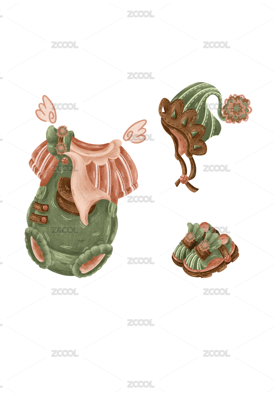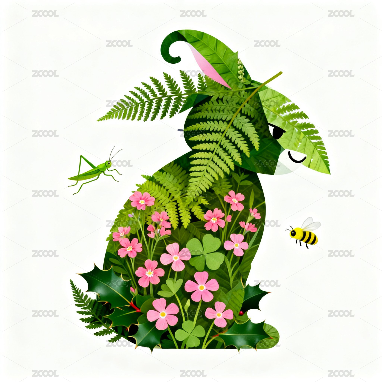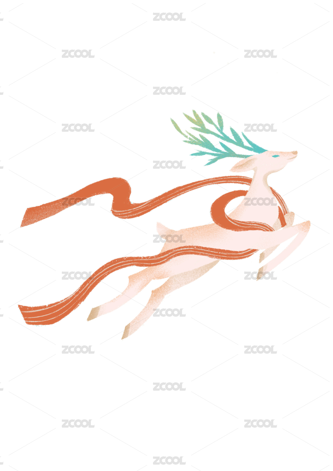 绿色背景橘色梅花鹿卡通可爱斑点小鹿元素