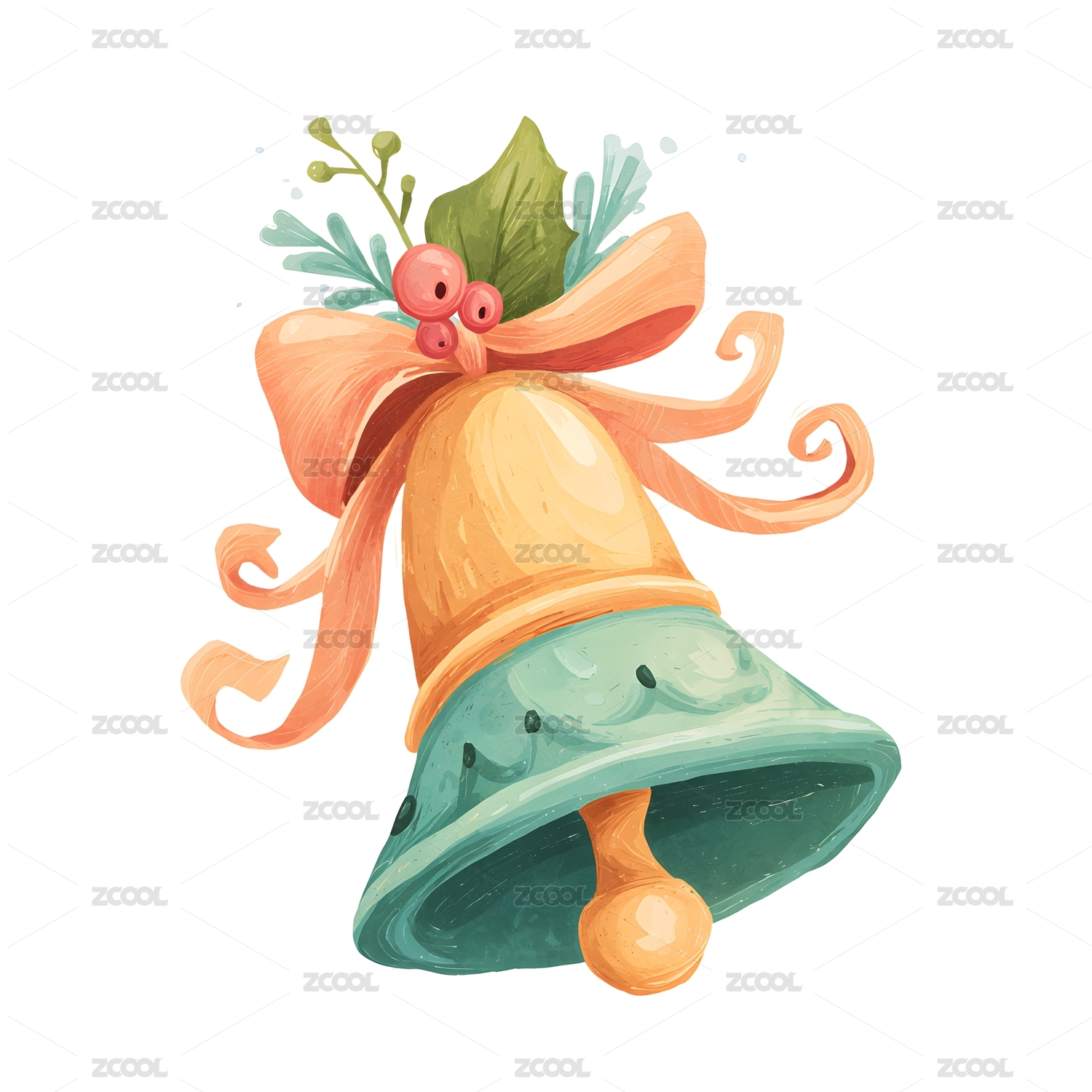 带蝴蝶结和浆果的圣诞铃铛装饰插画