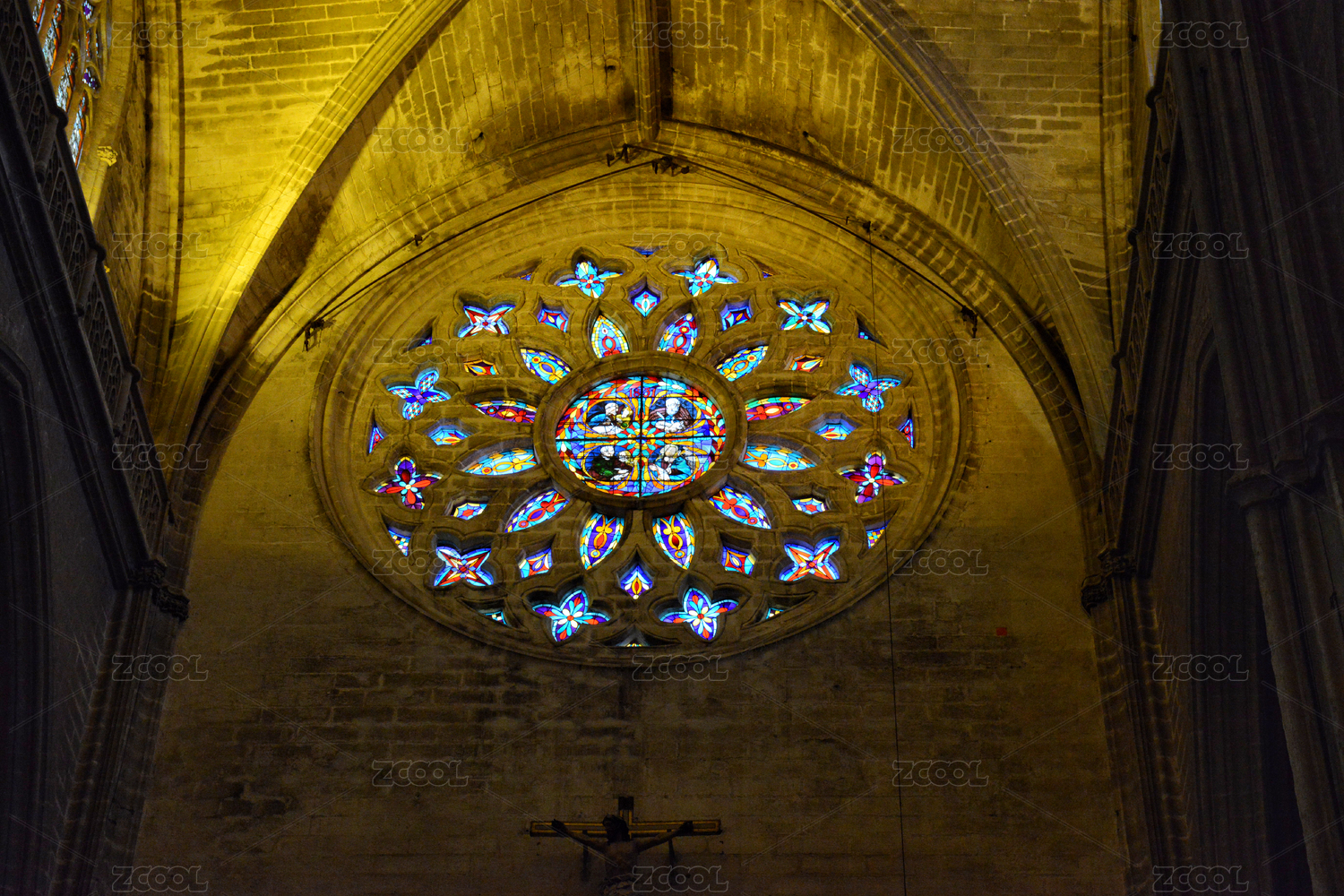 西班牙塞维利亚大教堂内的玻璃彩窗