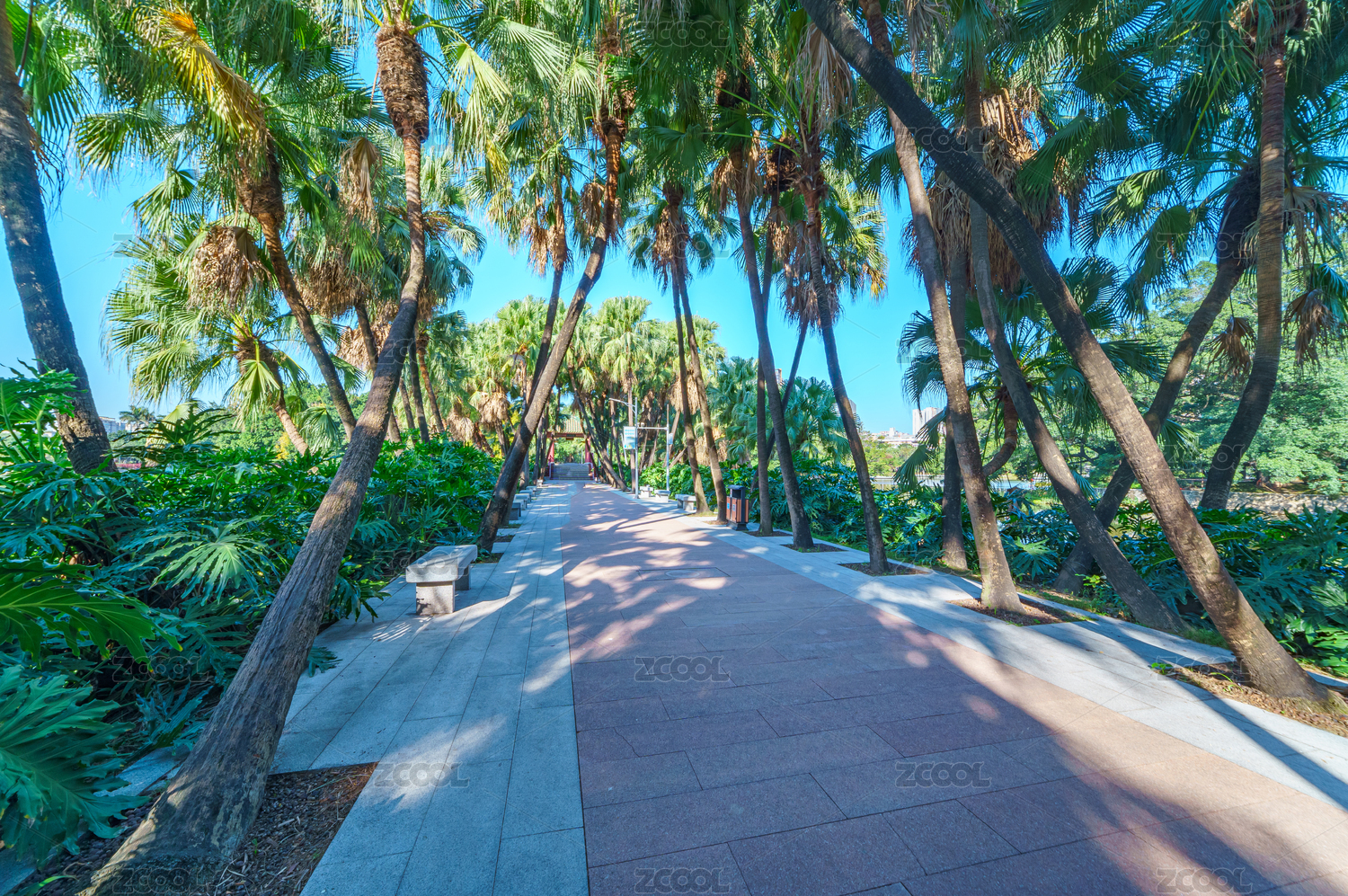 夏季蓝天白云下的深圳香蜜湖公园人行步道