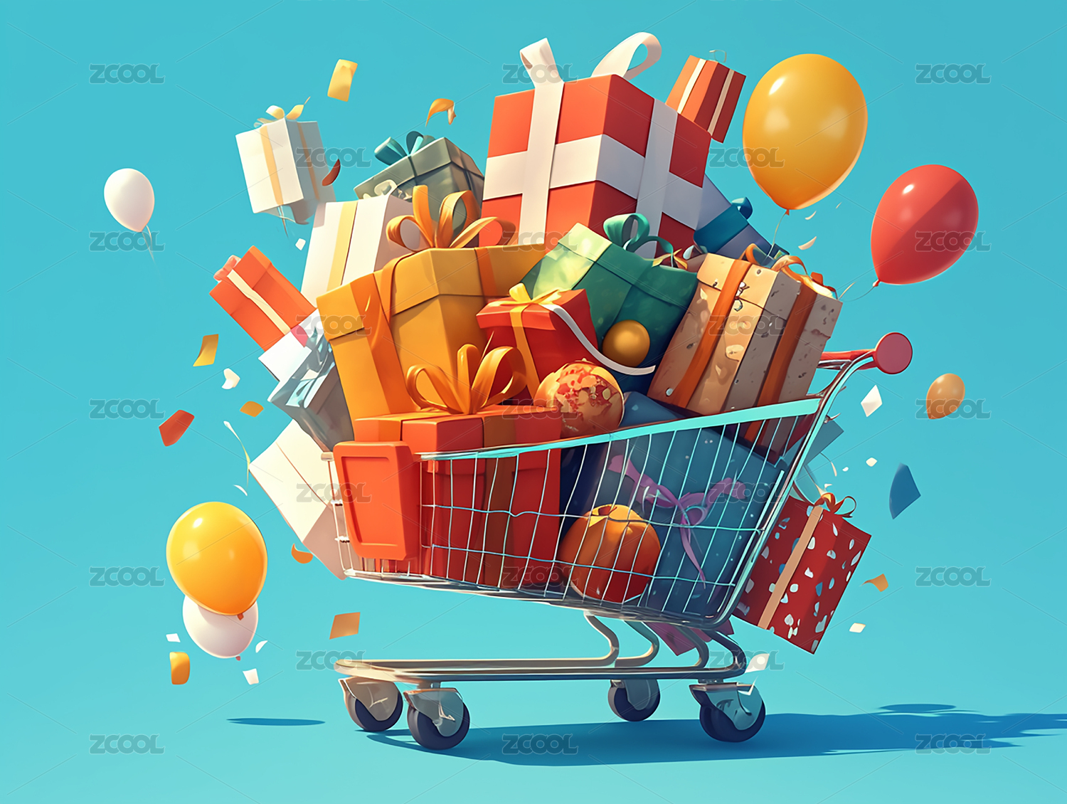 装满礼物的购物车插画