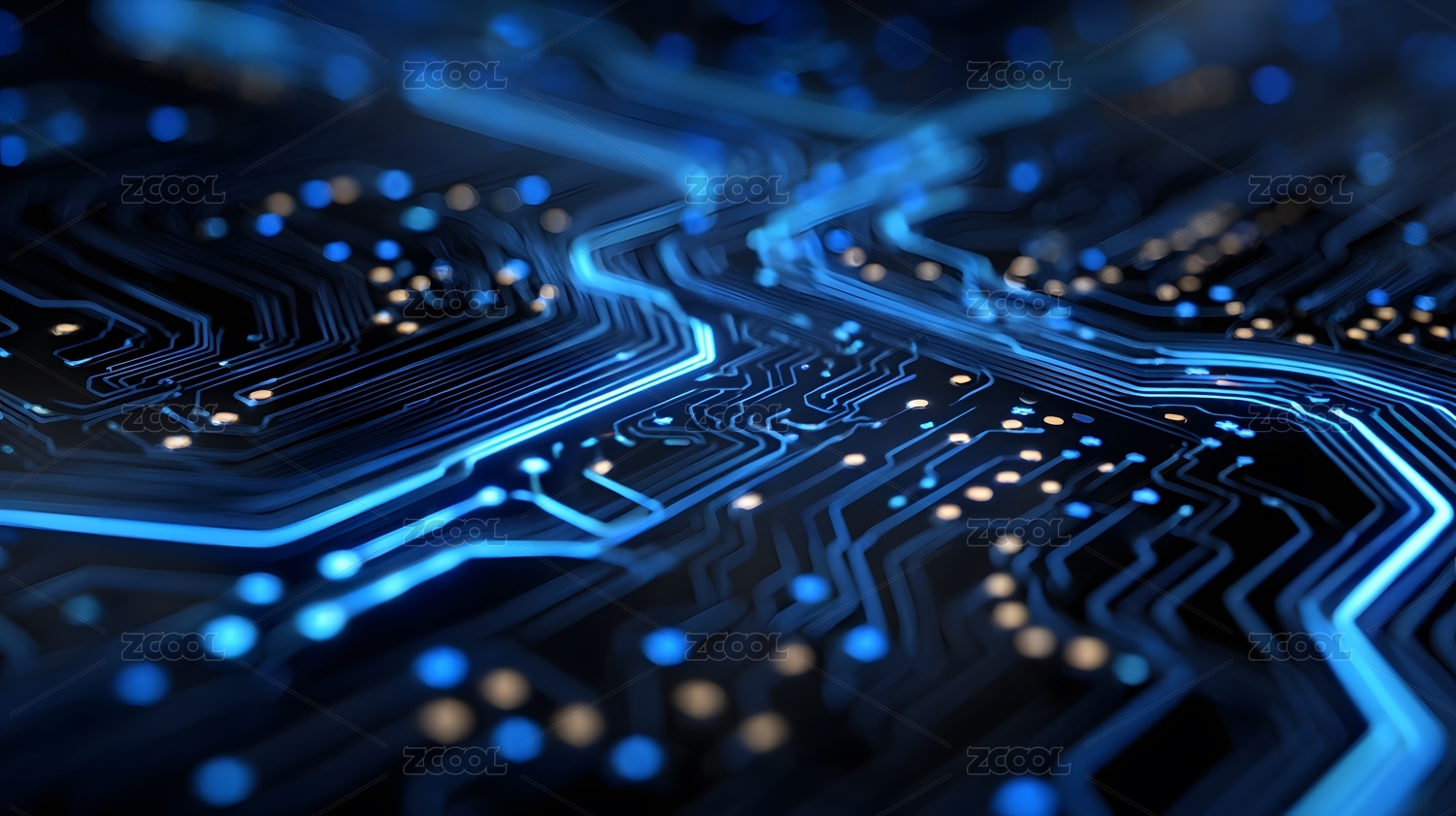 蓝色电路板的科技光影