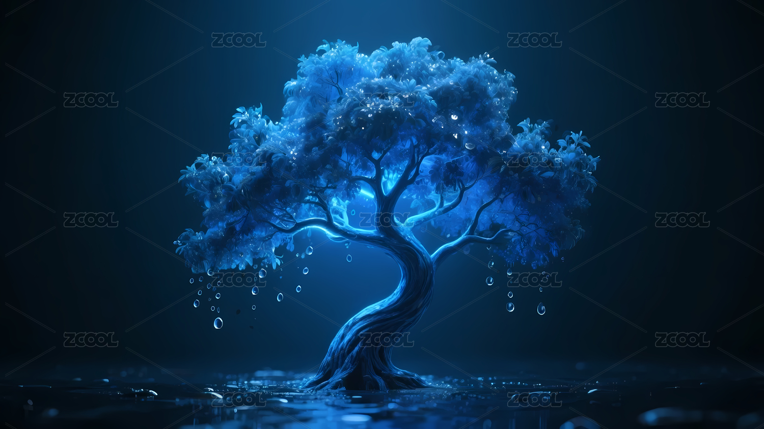 蓝色能量之树科幻背景