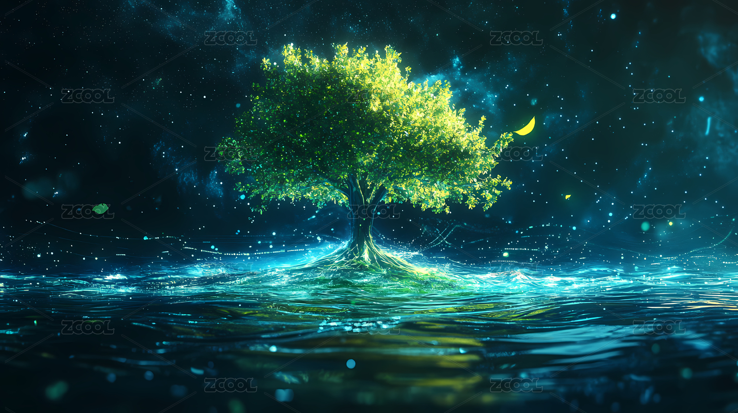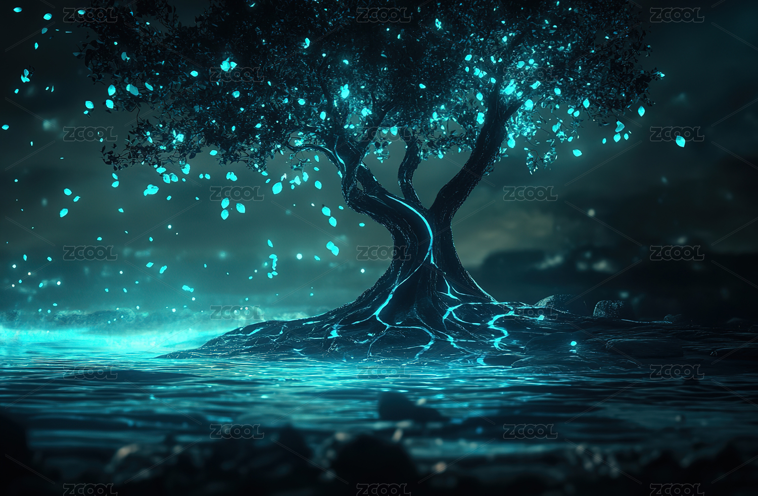 蓝树夜景奇幻自然场景