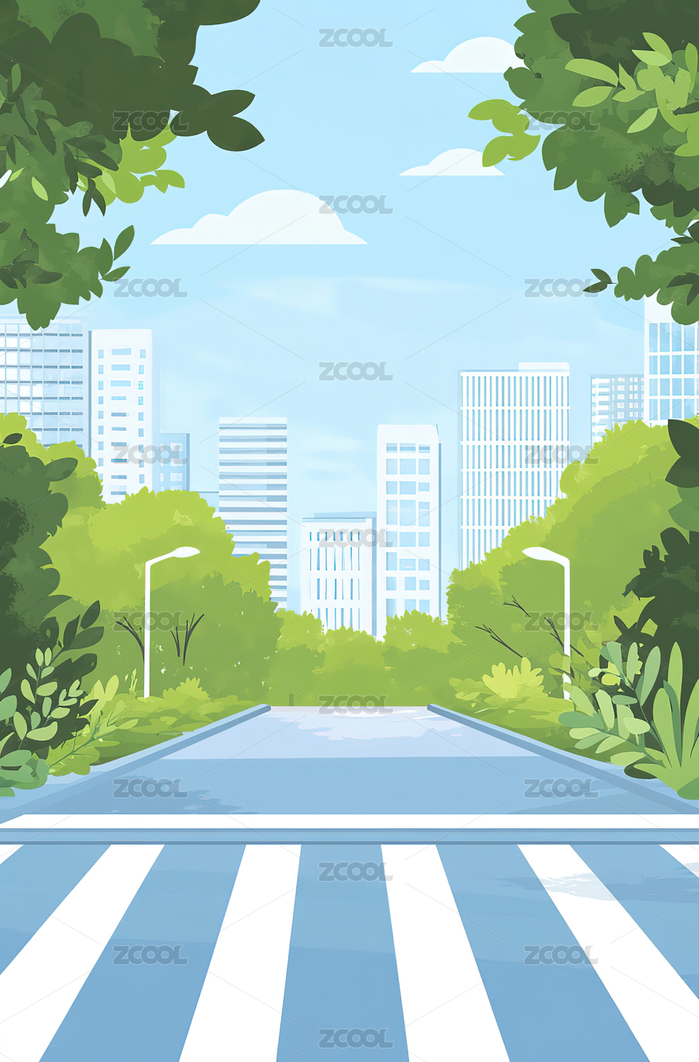 城市道路卡通插画