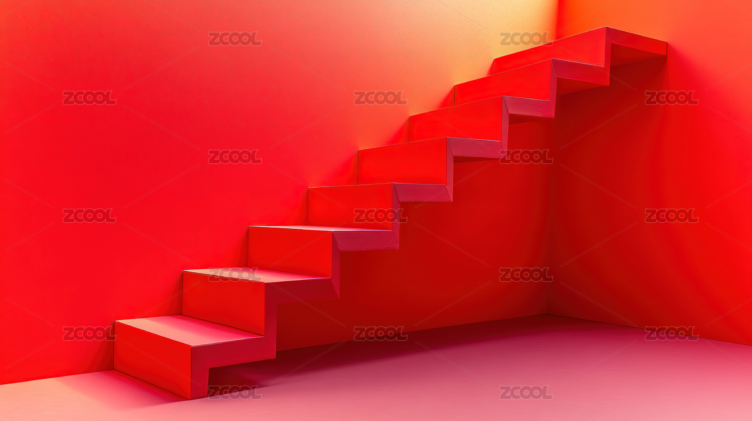 红色背景下的空楼梯