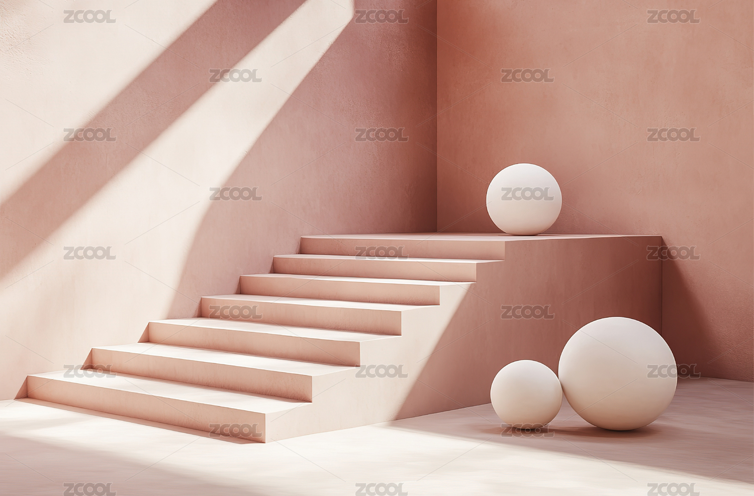 白色球体与橙色台阶