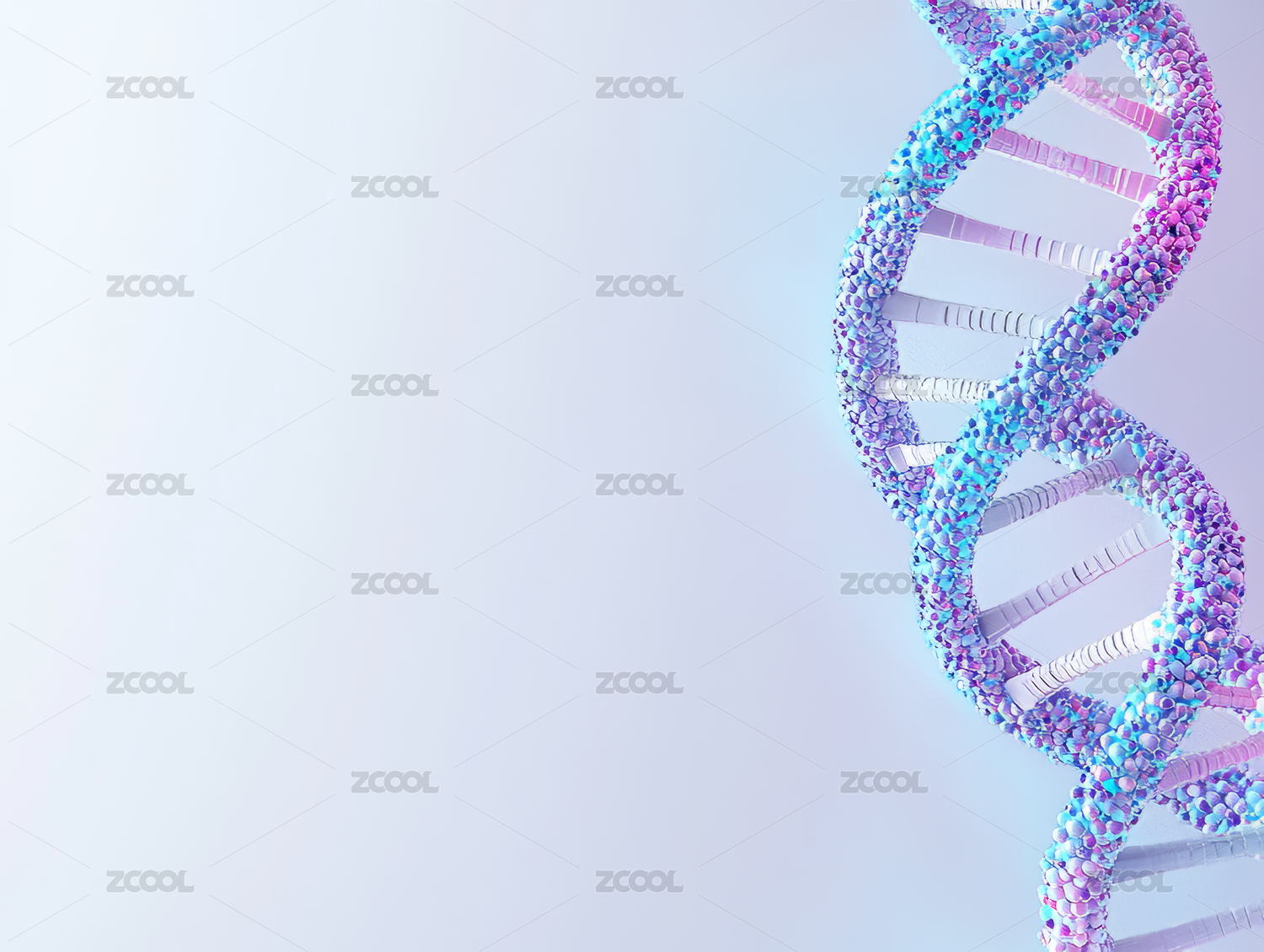 三维渲染的DNA螺旋双链模型在蓝色的液体背景中