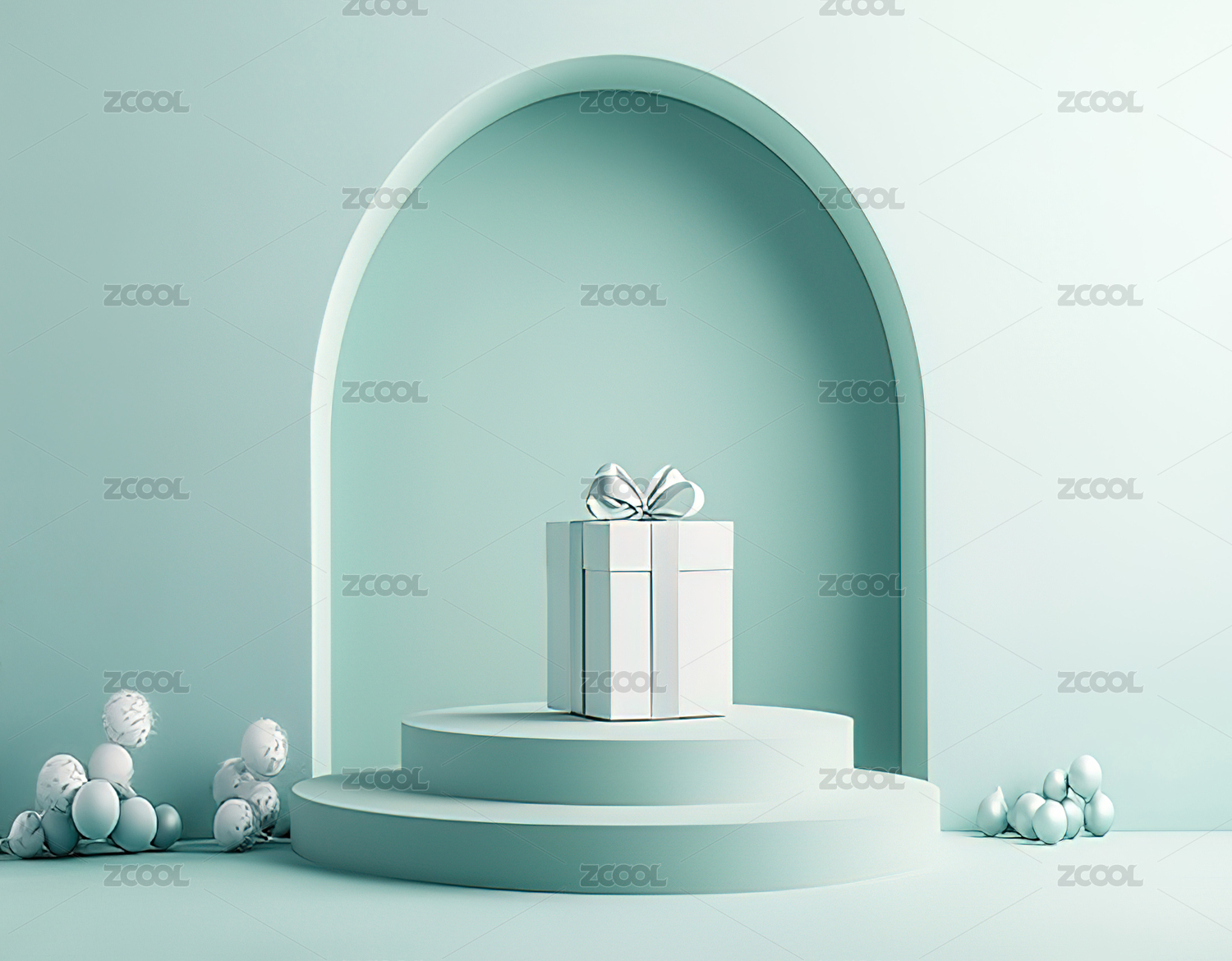 清新淡雅礼盒白色折纸的蓝色展台3D插画