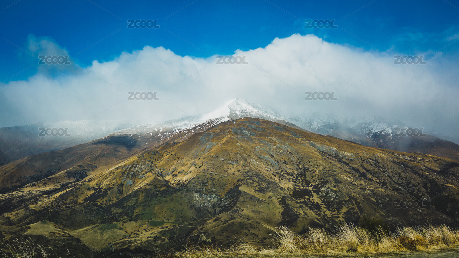 新西兰蓝天下满山的小黄草