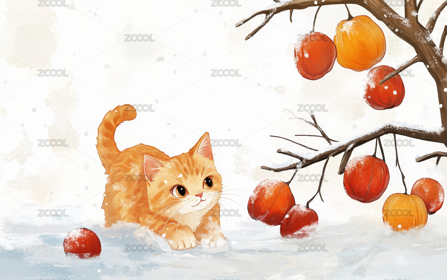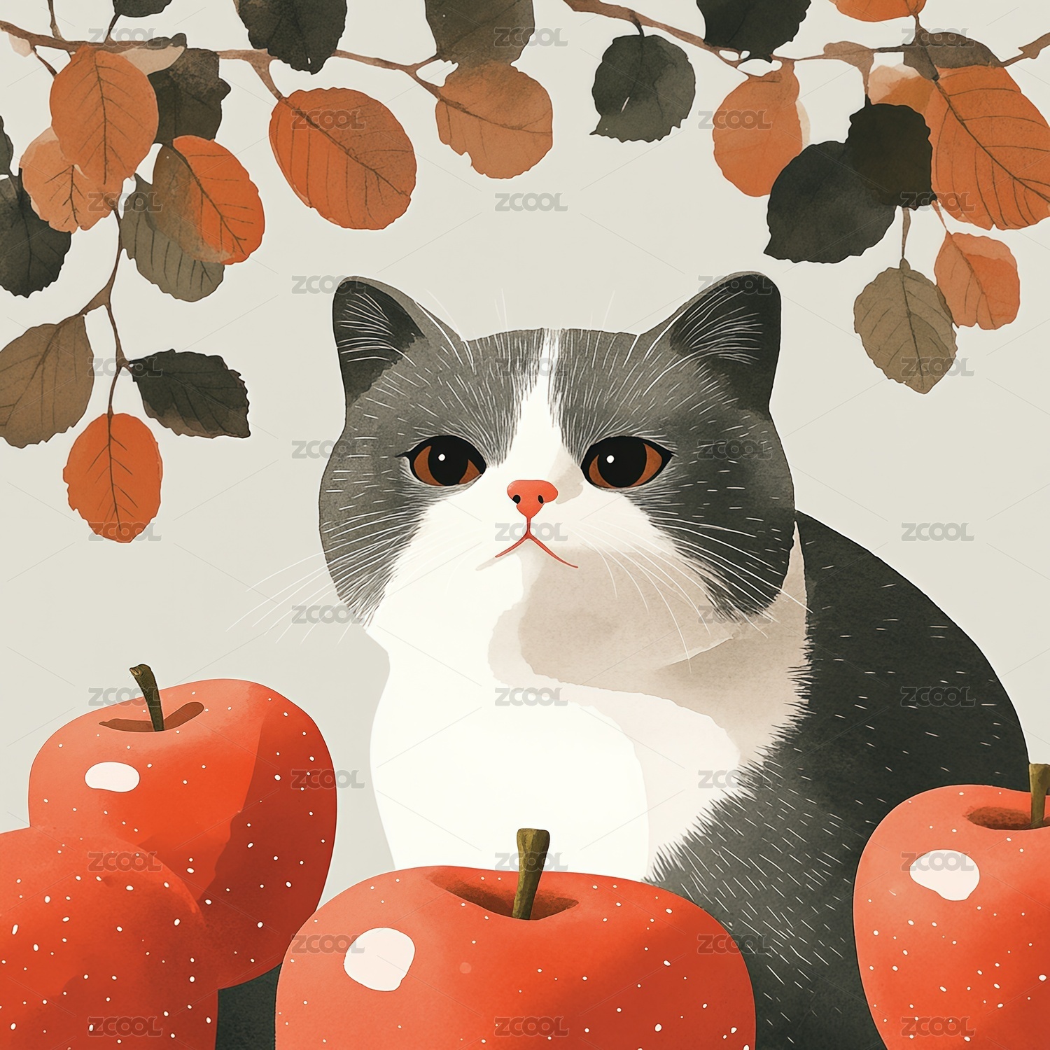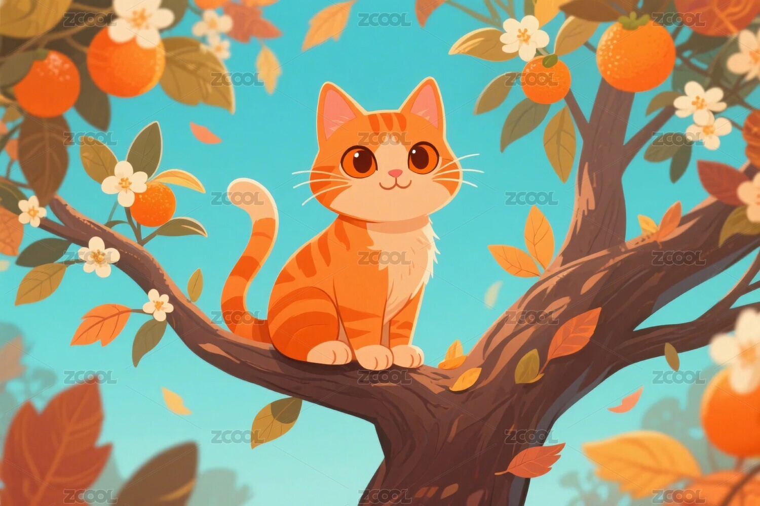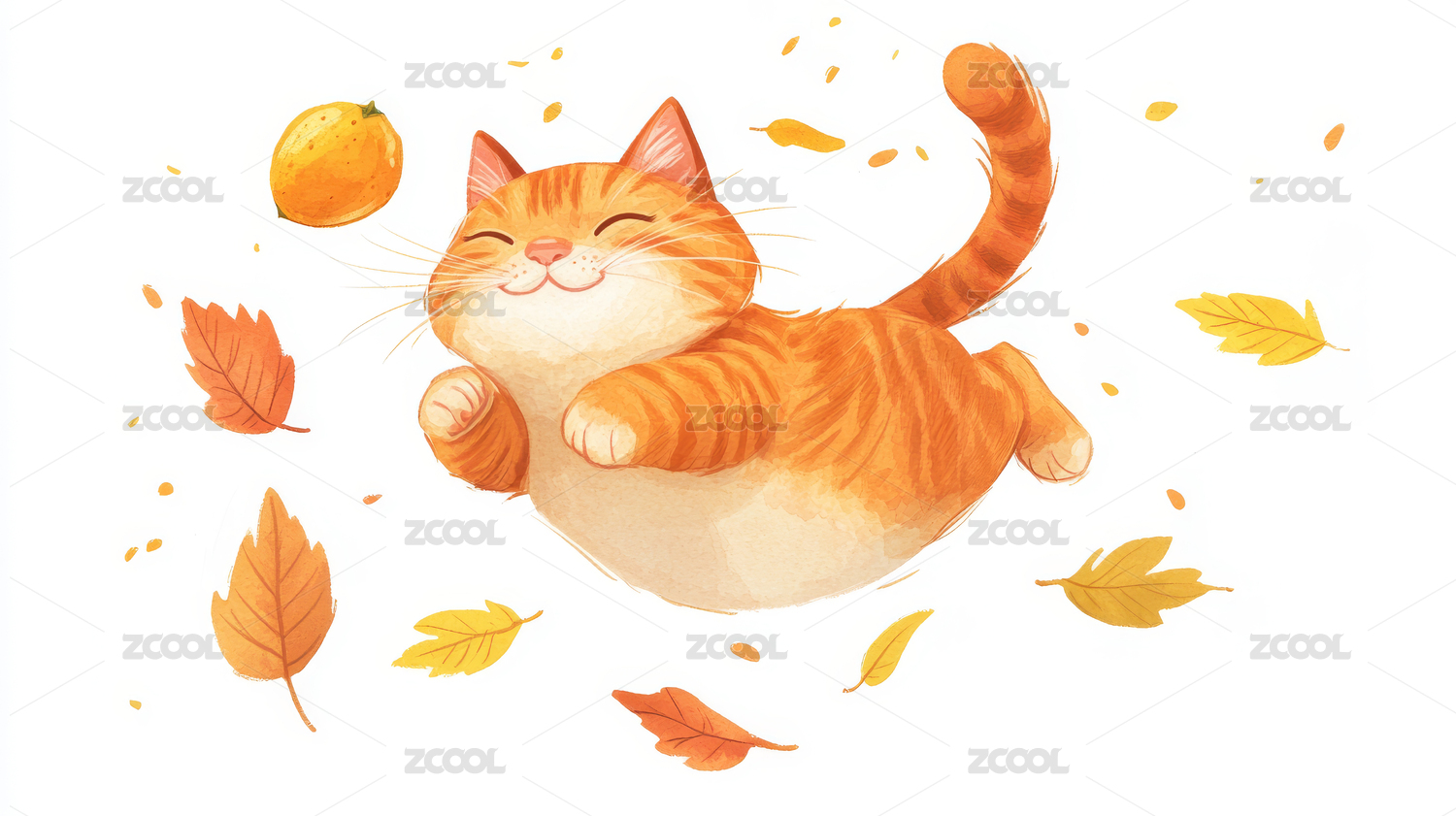 猫,小猫,猫咪,可爱,卡通,插画,动物,扁平风,秋天,秋分