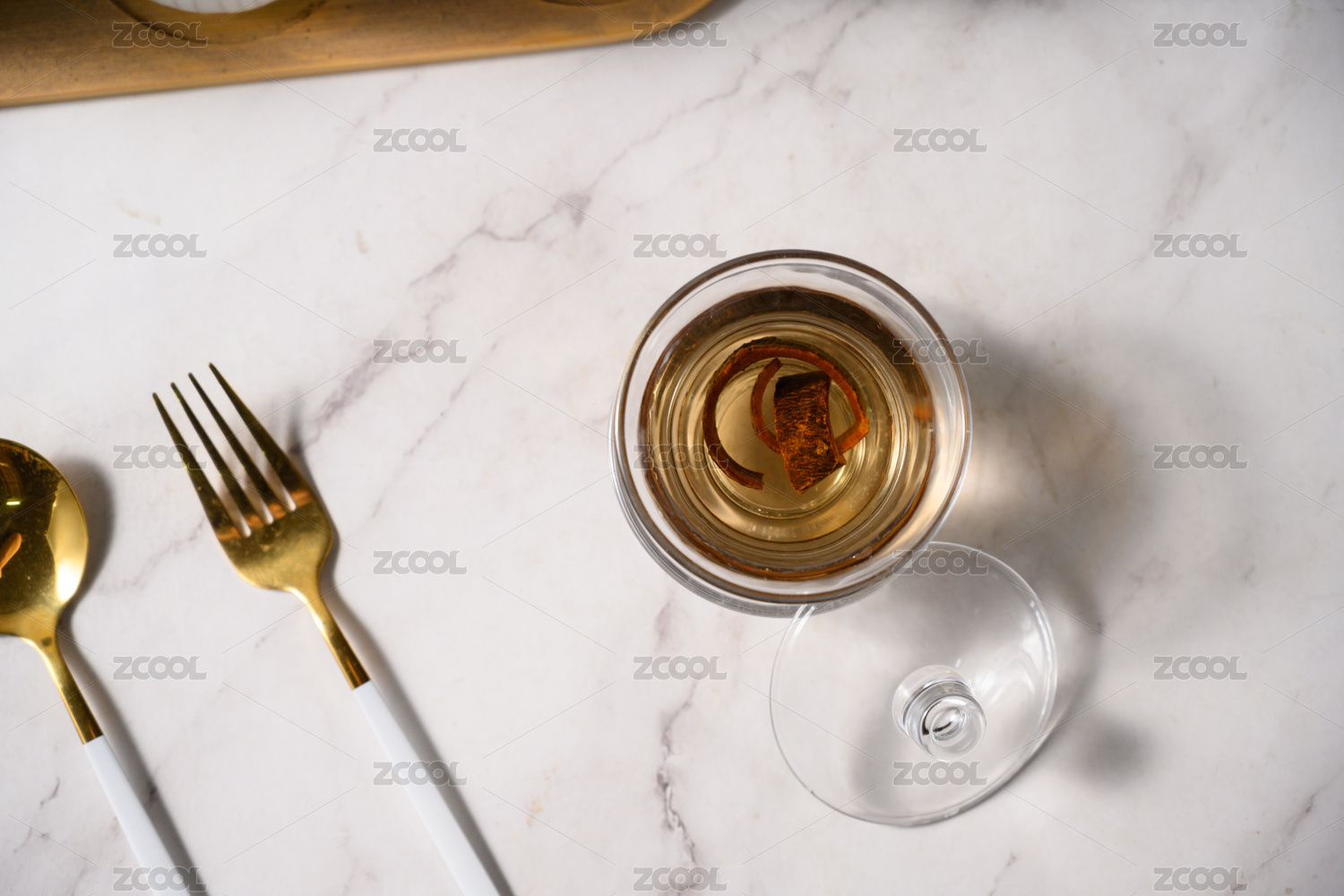 桌面上的杯子里的甘甜的冰桂花茶